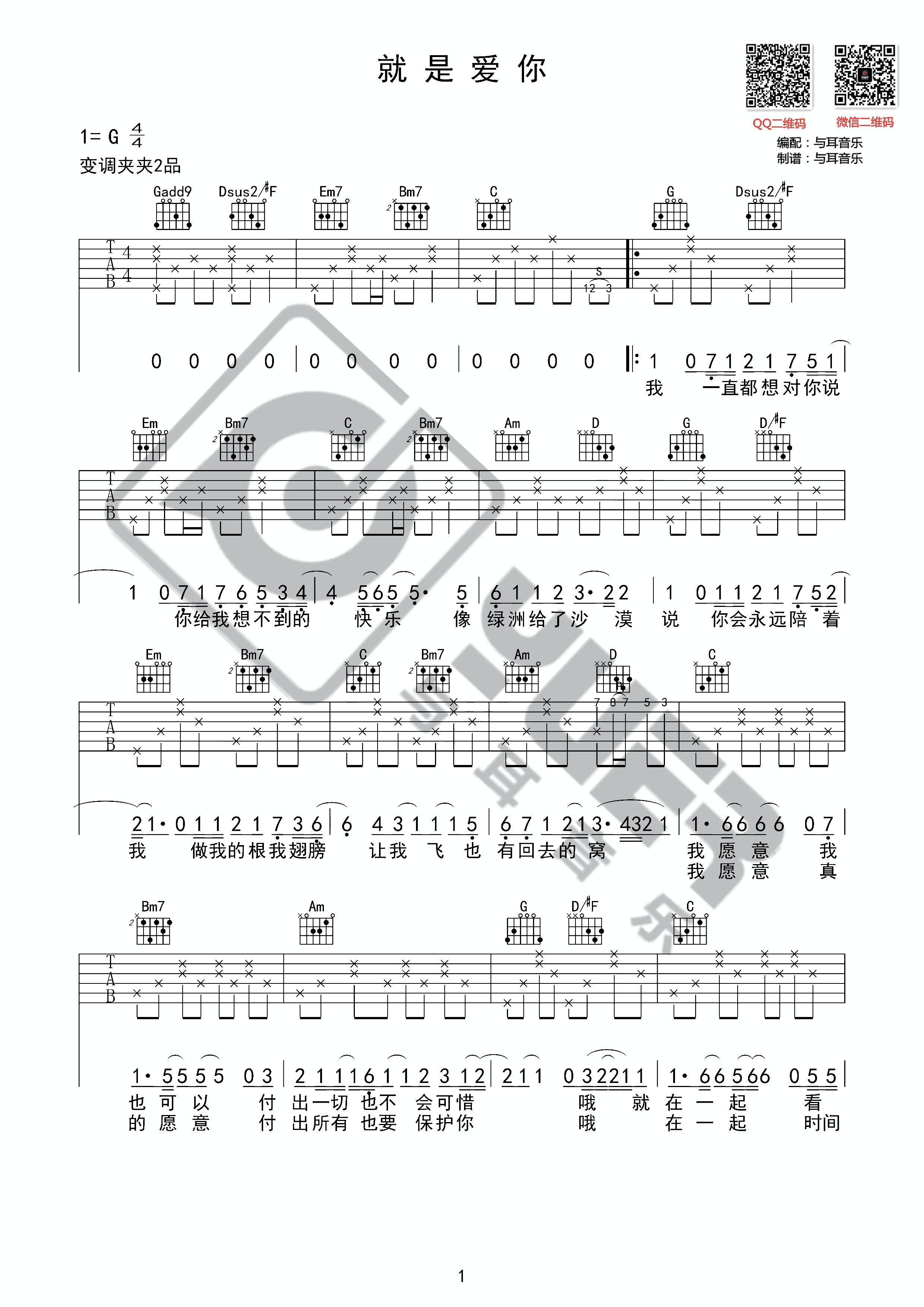 吉他陶喆 - 就是爱你(与耳音乐) [弹唱] 吉他谱