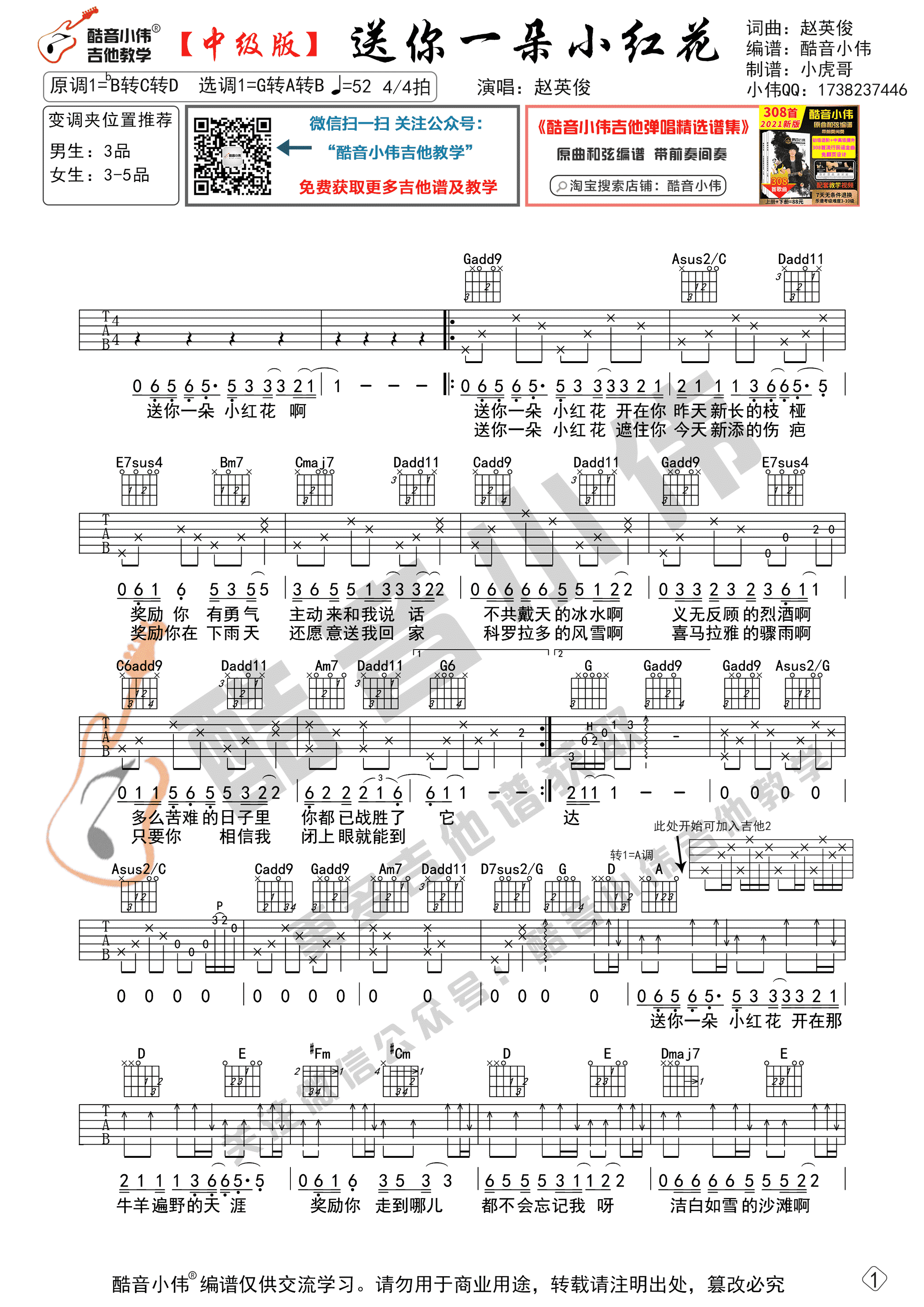 吉他赵英俊 - 送你一朵小红花(中级版 带教学视频 酷音小伟吉他教学)
