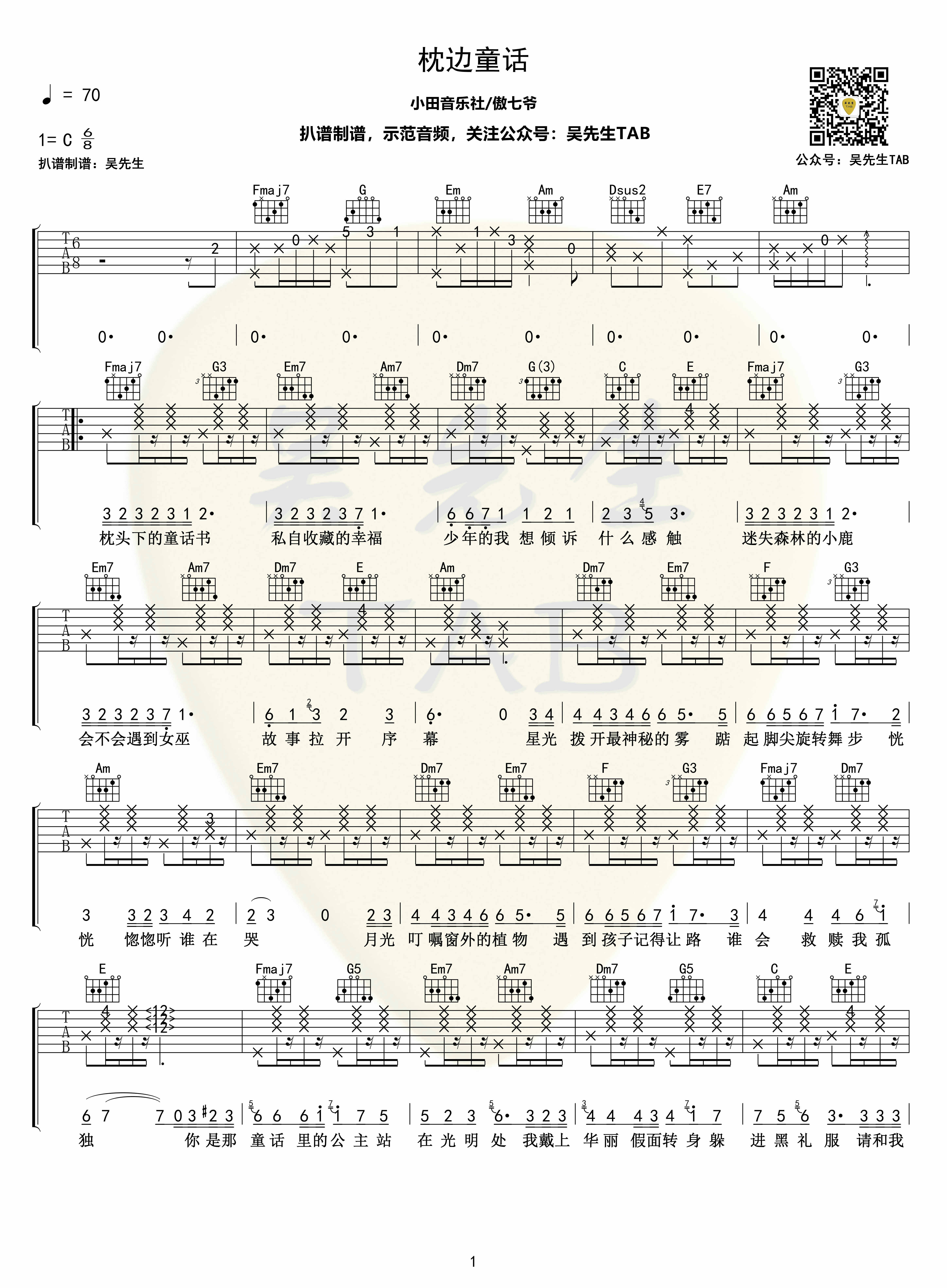 傲七爷-枕边童话[弹唱]吉他谱...
