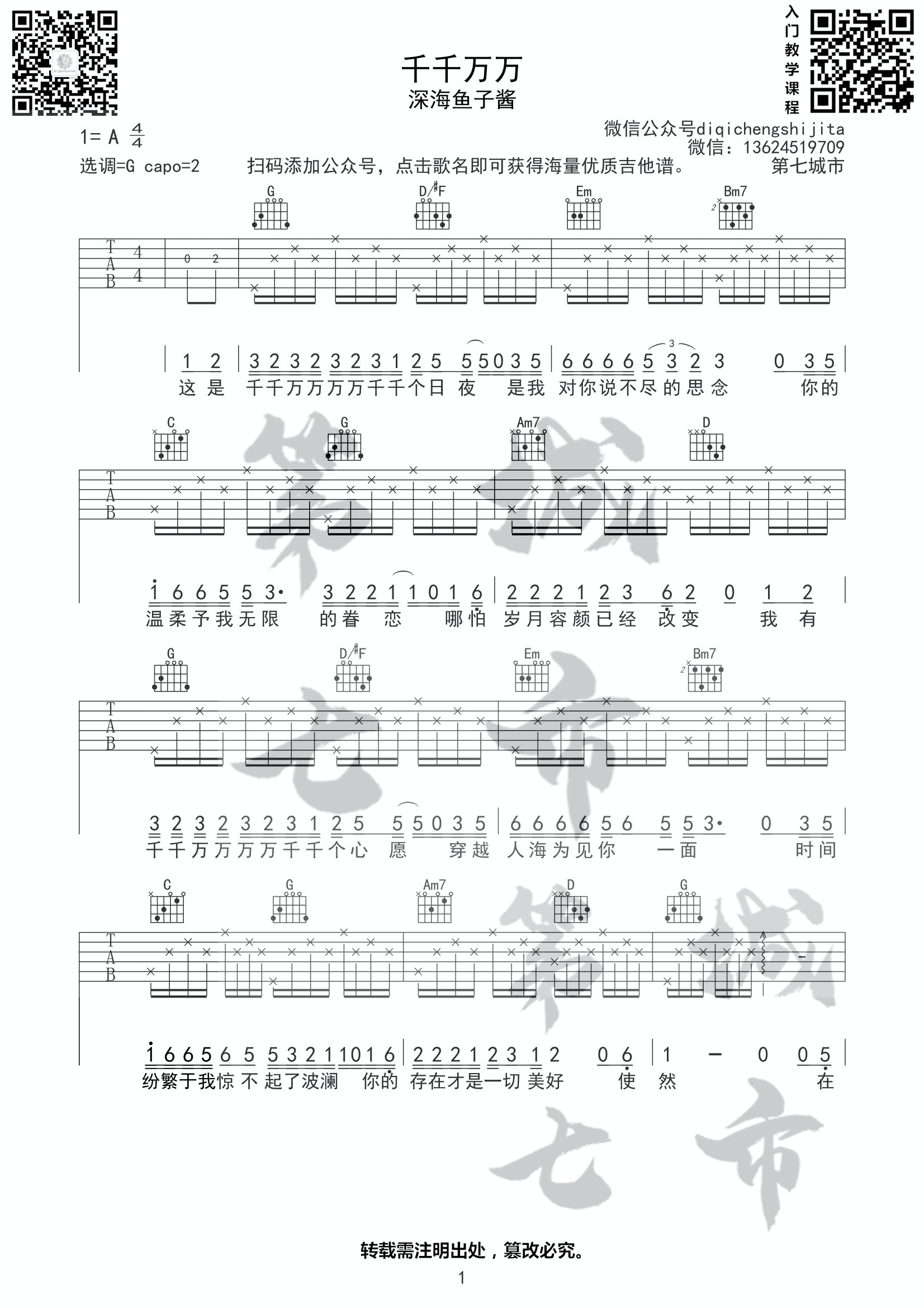 吉他深海鱼子酱 - 千千万万 [千千万万 深海鱼子酱 吉他谱] 吉他谱