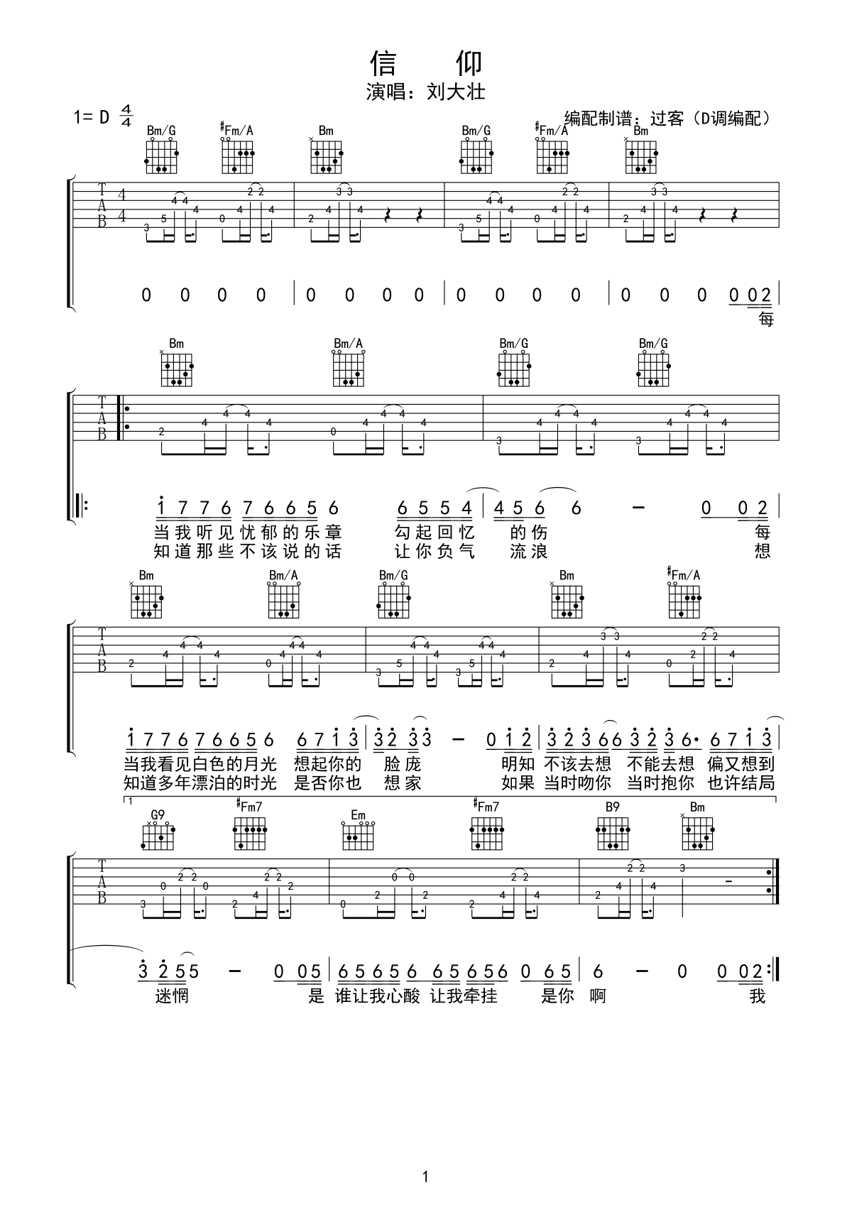 刘大壮-信仰(采用D调编配)吉他谱...