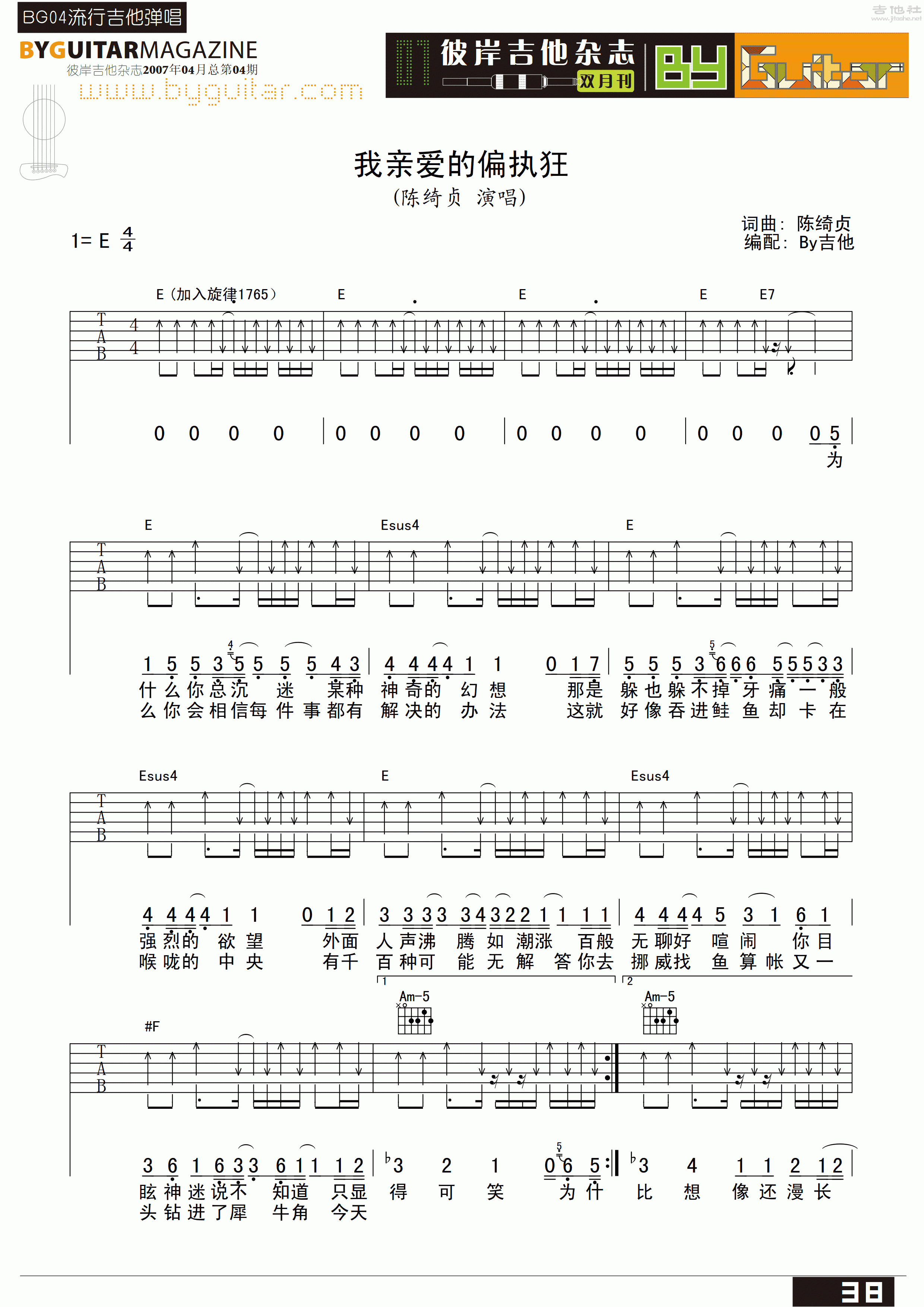 陈绮贞-我亲爱的偏执狂[弹唱彼岸吉他]吉他谱...
