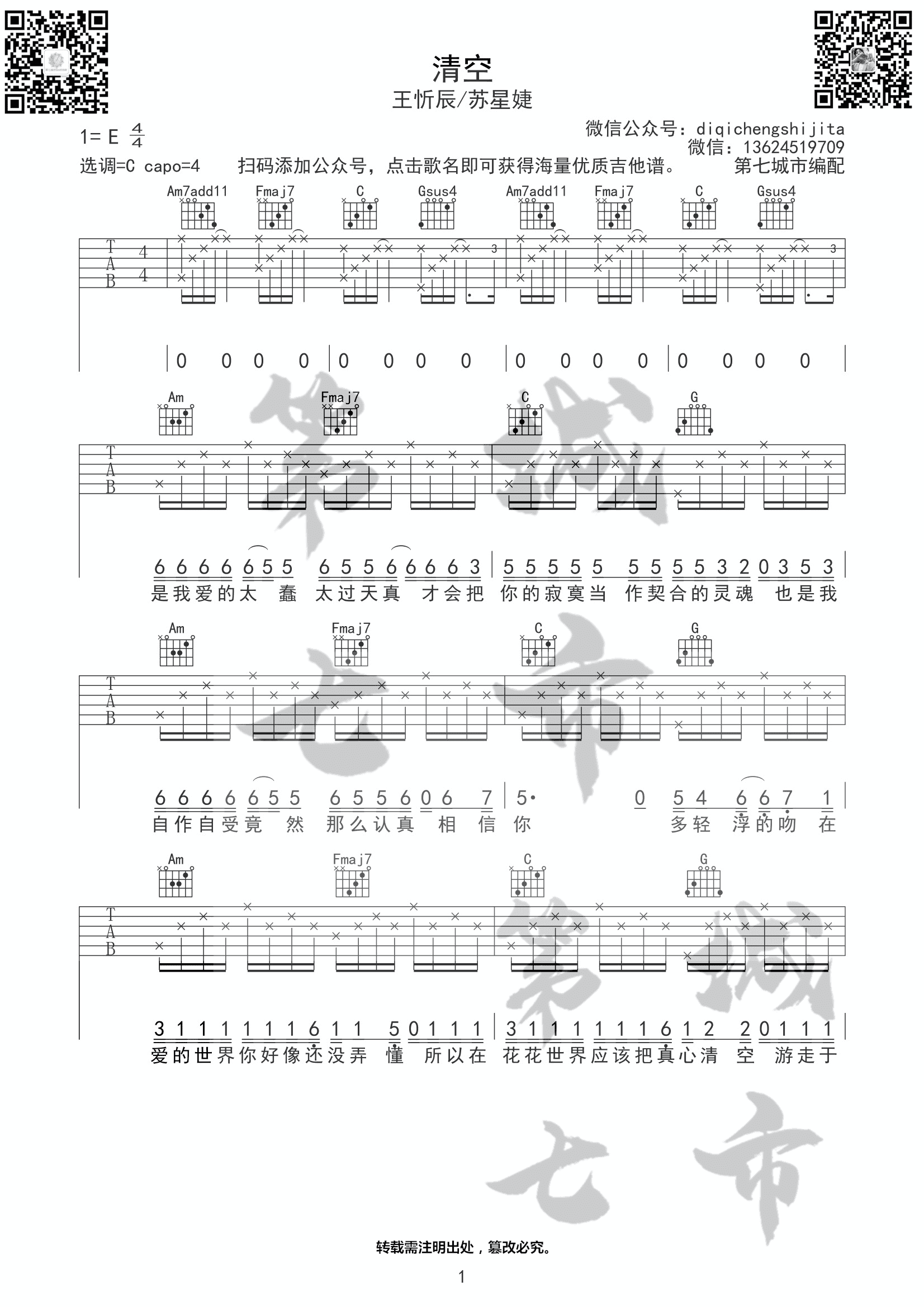 王忻辰-清空(王忻辰/苏星婕)[清空王忻辰吉他谱]吉他谱...