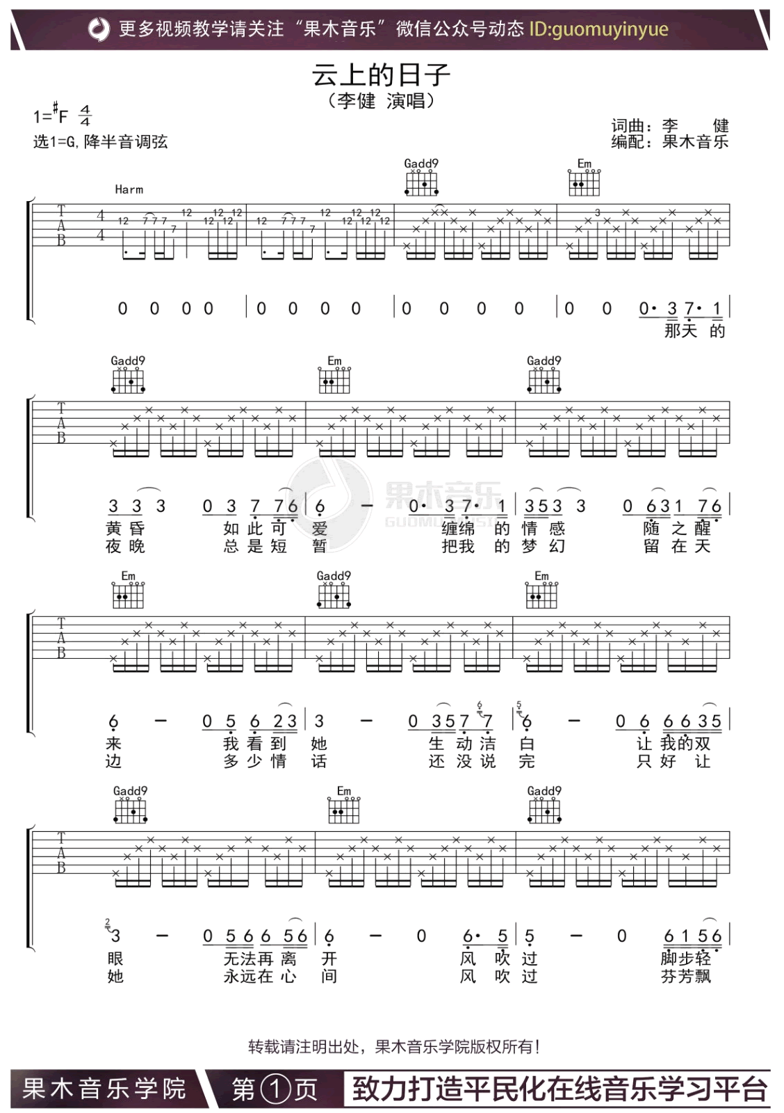 李健《云上的日子》吉他谱-G调弹唱谱...