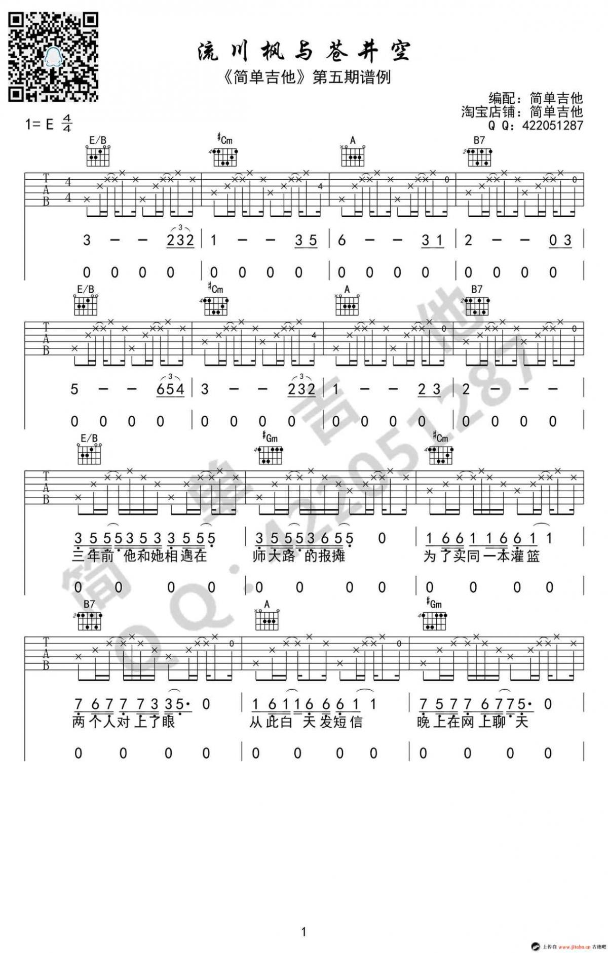 《流川枫与苍井空》吉他谱-E调弹唱谱...