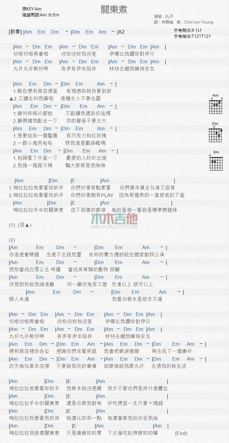 吉他丸子《关东煮》吉他谱_C调吉他弹唱谱