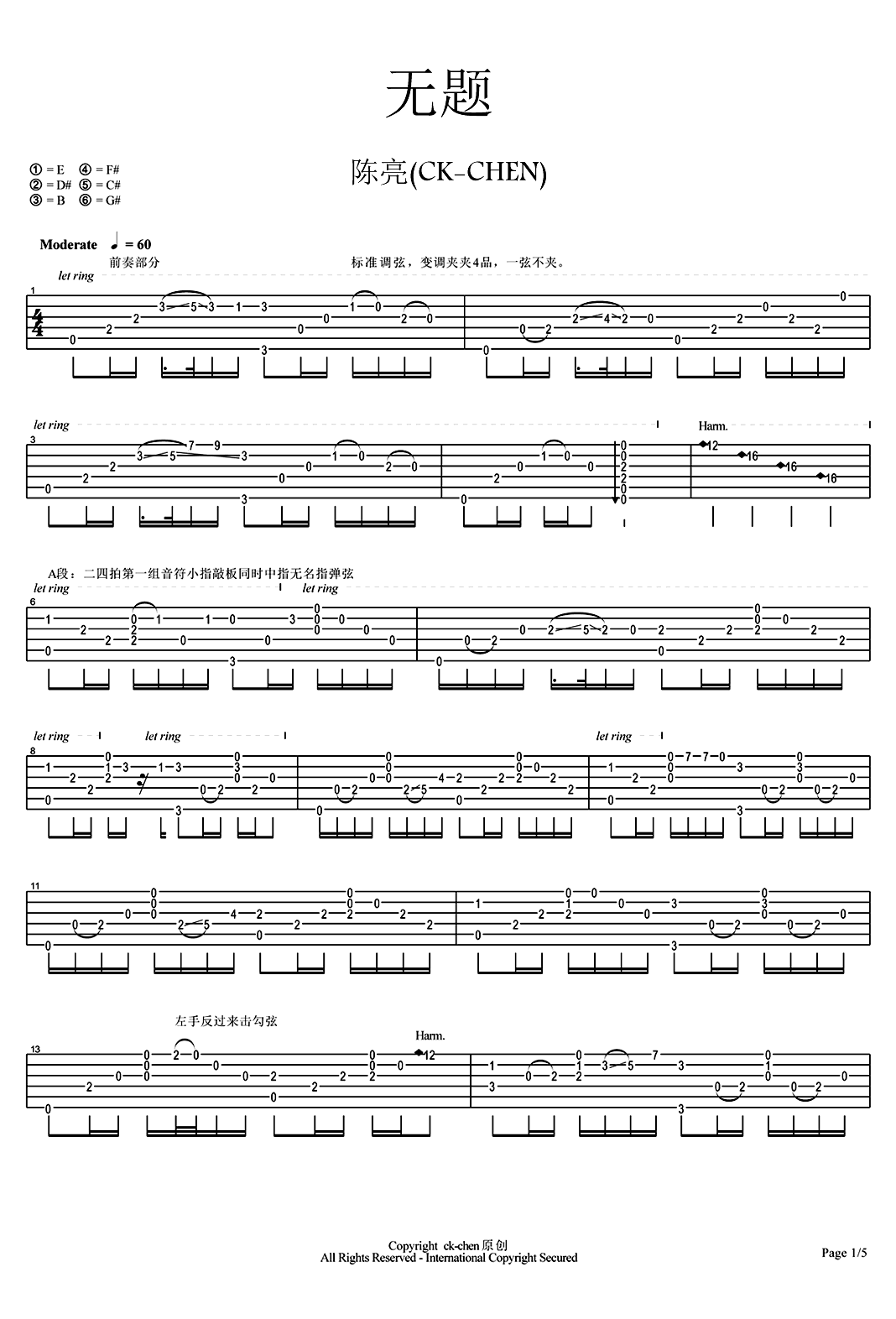 S.I.N.G《寄明月》指弹谱-C调六线谱...