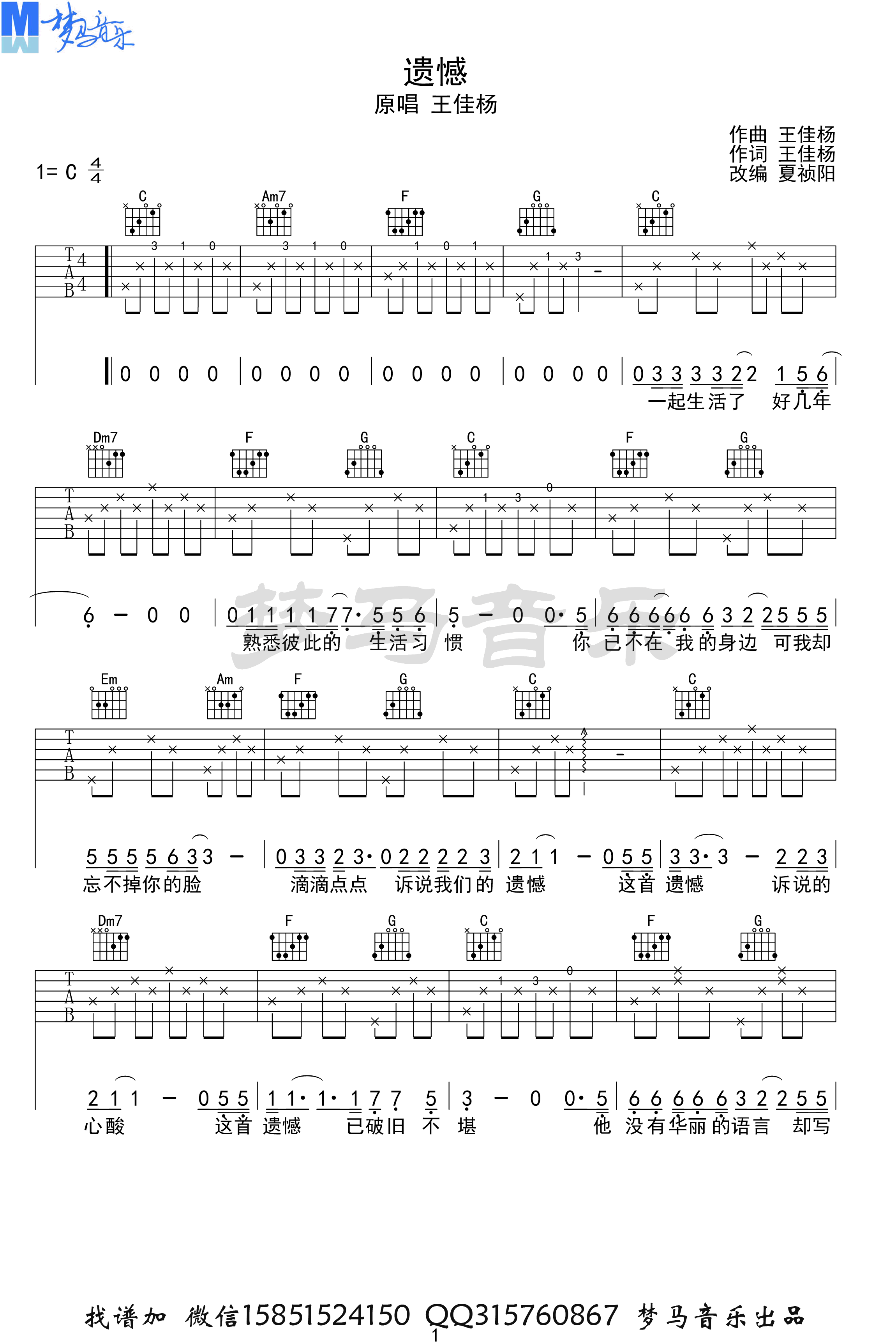 何润东《我记得我爱过》吉他谱-C调弹唱谱...