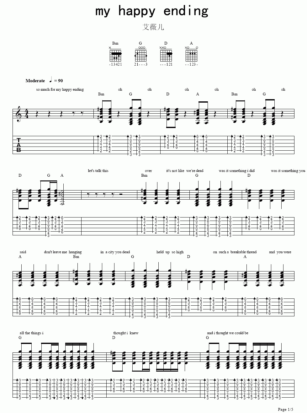 艾薇儿《myhappyending》吉他谱_C调弹唱谱...