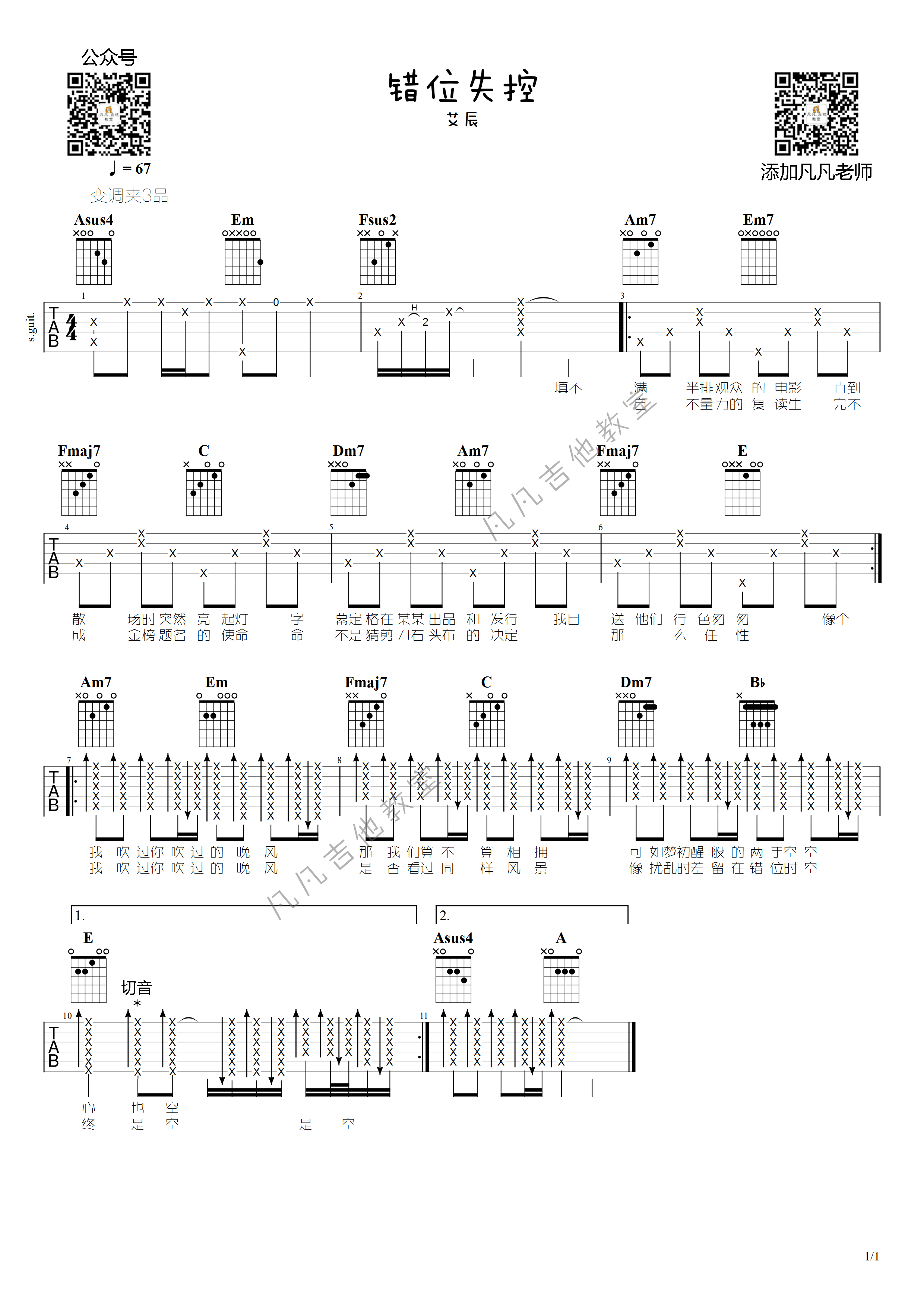 吉他艾辰《错位时空》吉他谱