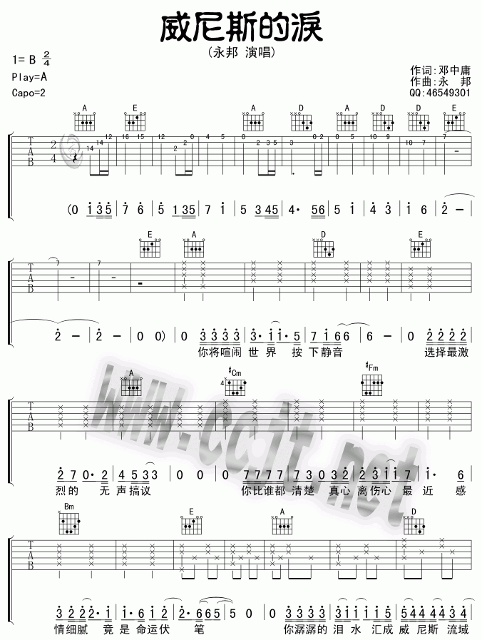 永邦《威尼斯的泪》吉他谱_G调吉他弹唱谱...