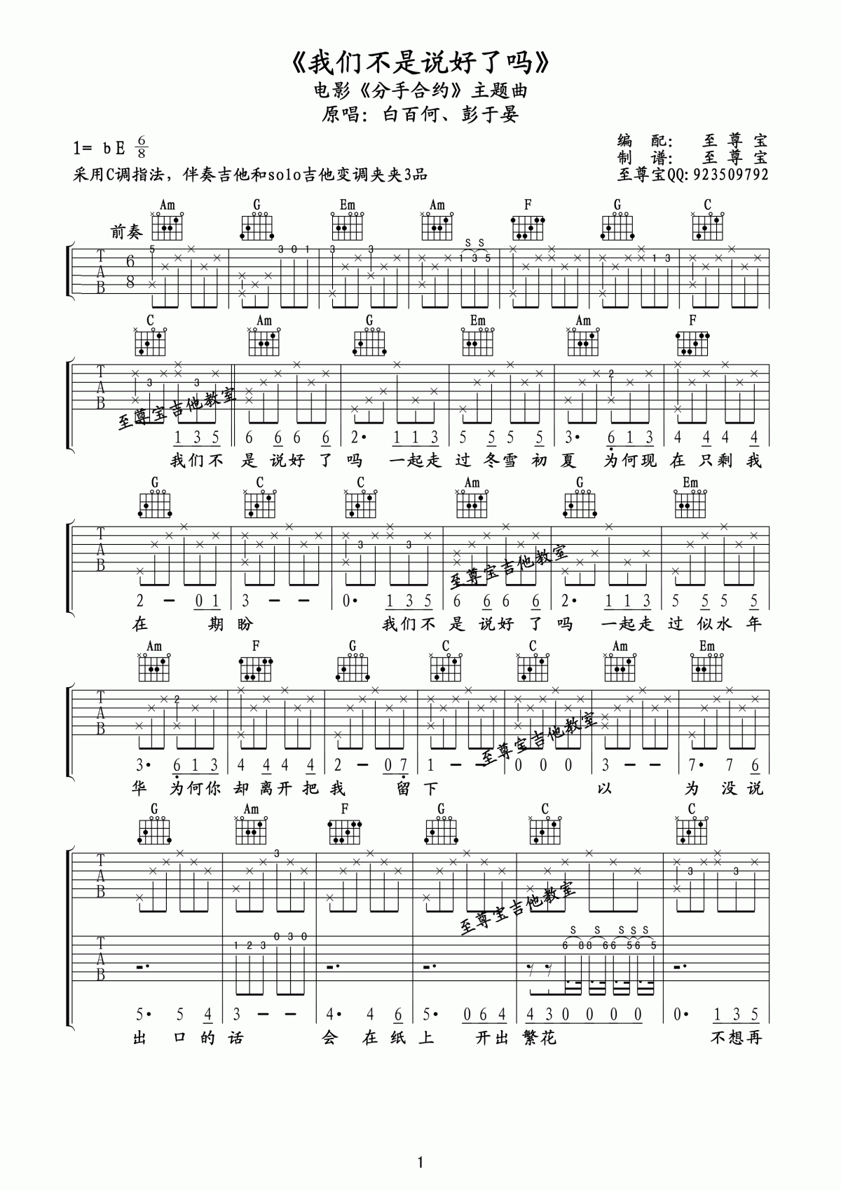 吉他白百何/彭于晏《我们不是说好了吗》吉他谱_降E调弹唱谱