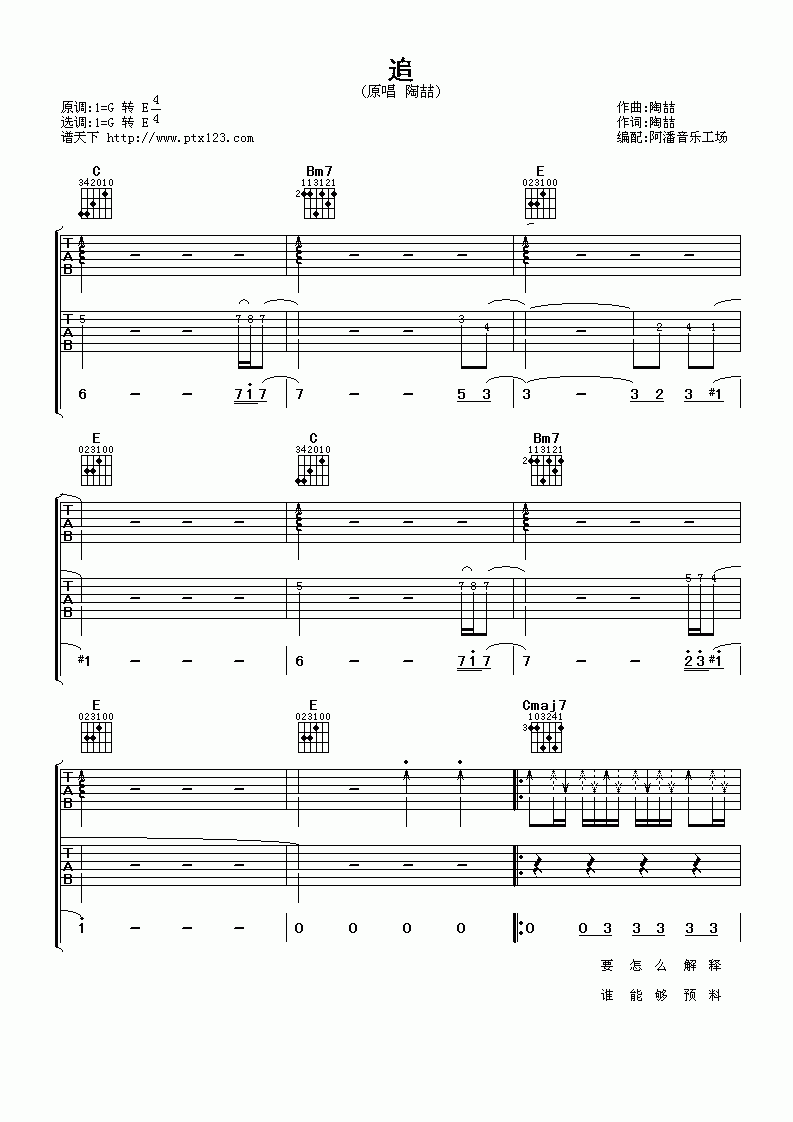 吉他陶喆《追》吉他谱_G调弹唱谱