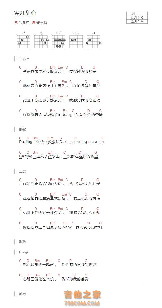 吉他 马赛克《霓虹甜心》吉他谱-G调和弦版