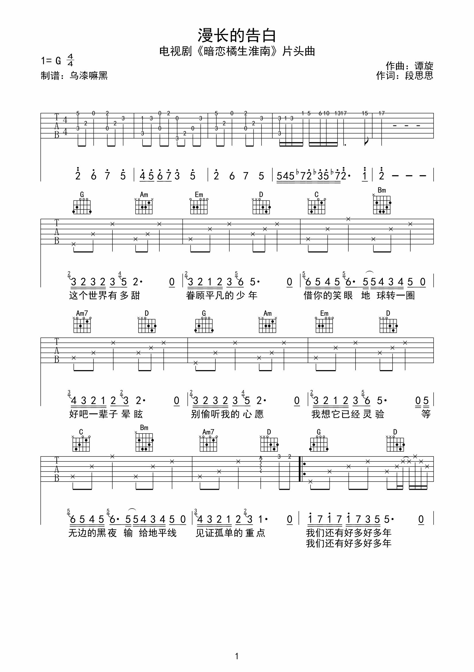 吉他《漫长的告白》吉他谱-G调弹唱谱