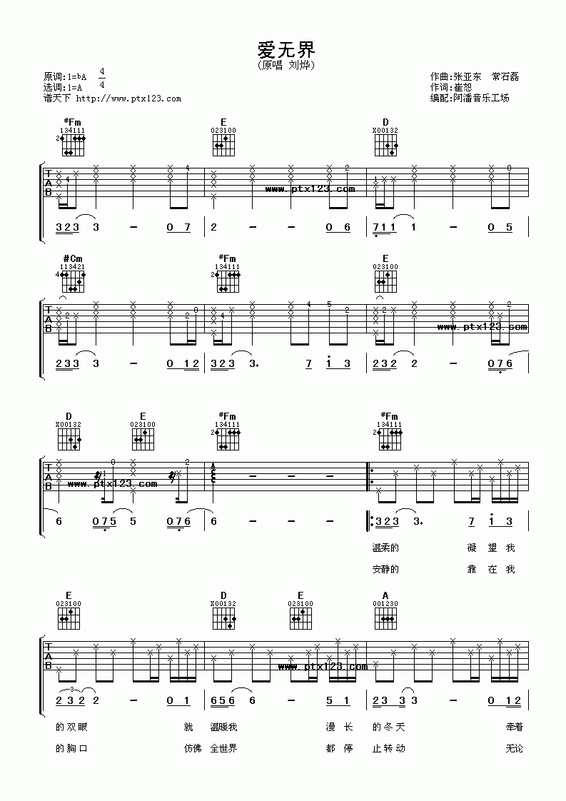刘烨《爱无界》吉他谱_C调吉他弹唱谱...
