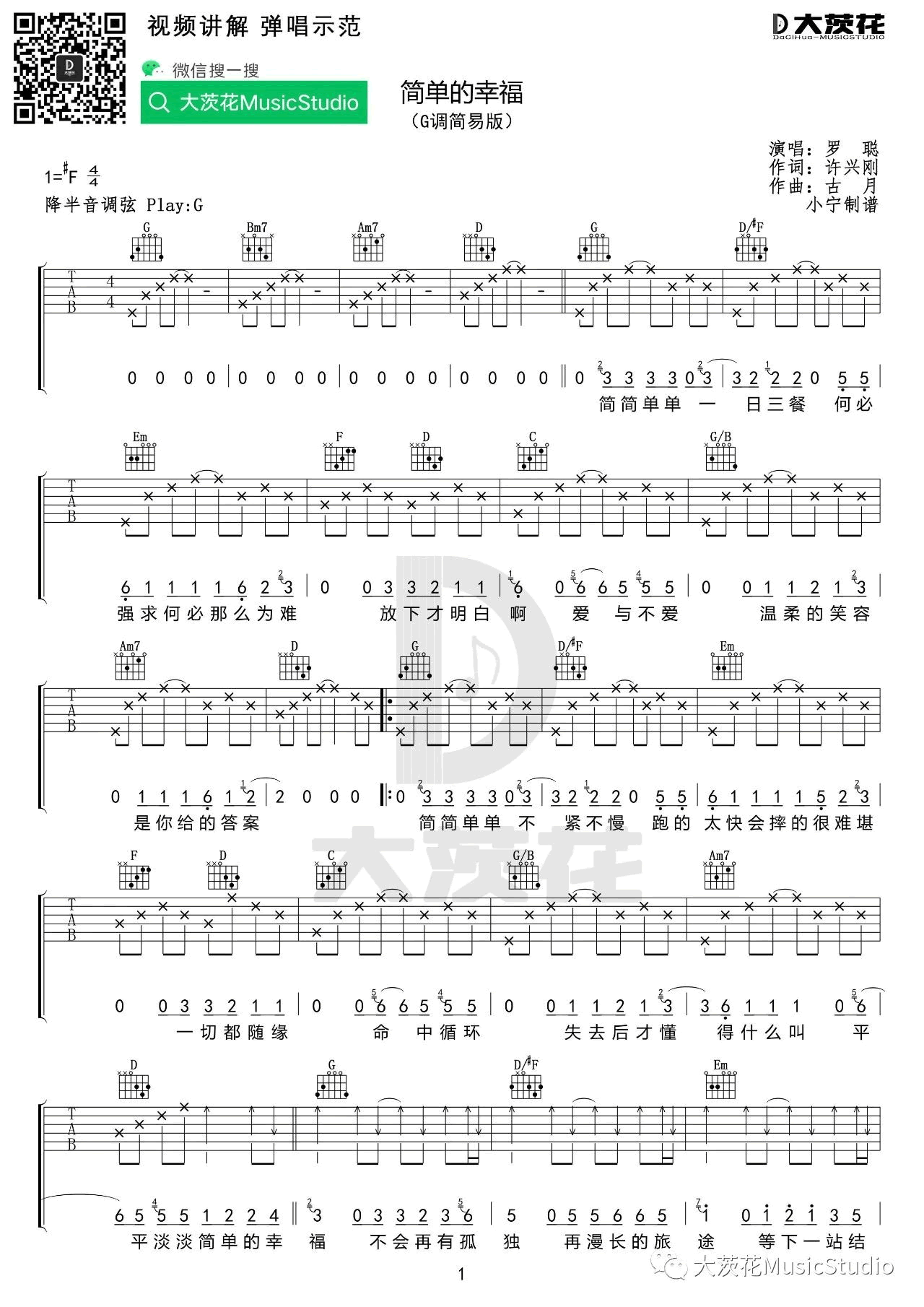 罗聪《简单的幸福》吉他谱-G调弹唱谱...