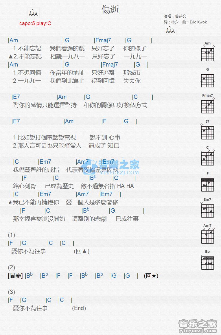 叶倩文《伤逝》吉他谱-C调弹唱版...