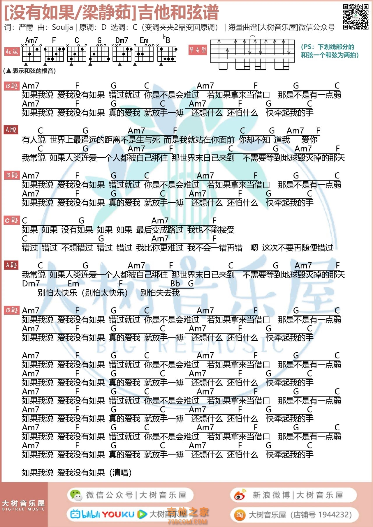 吉他梁静茹《没有如果》吉他谱-C调弹唱谱