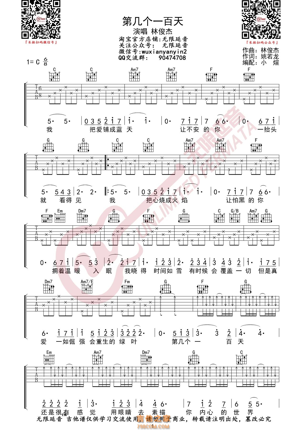 吉他林俊杰《 第几个一百天》 吉他谱-C调弹唱谱