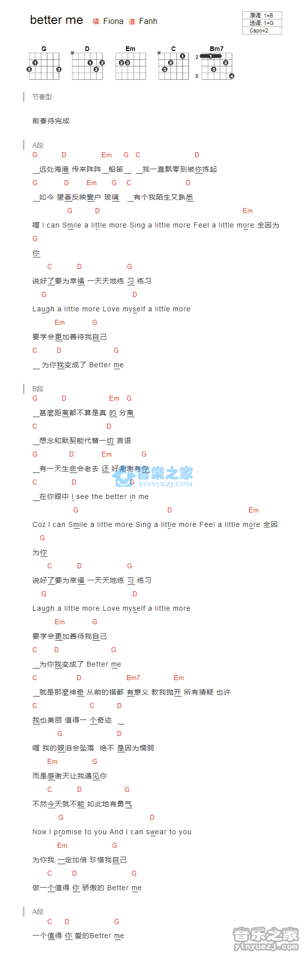 薛凯琪《BetterMe》吉他谱_G调和弦弹唱版...