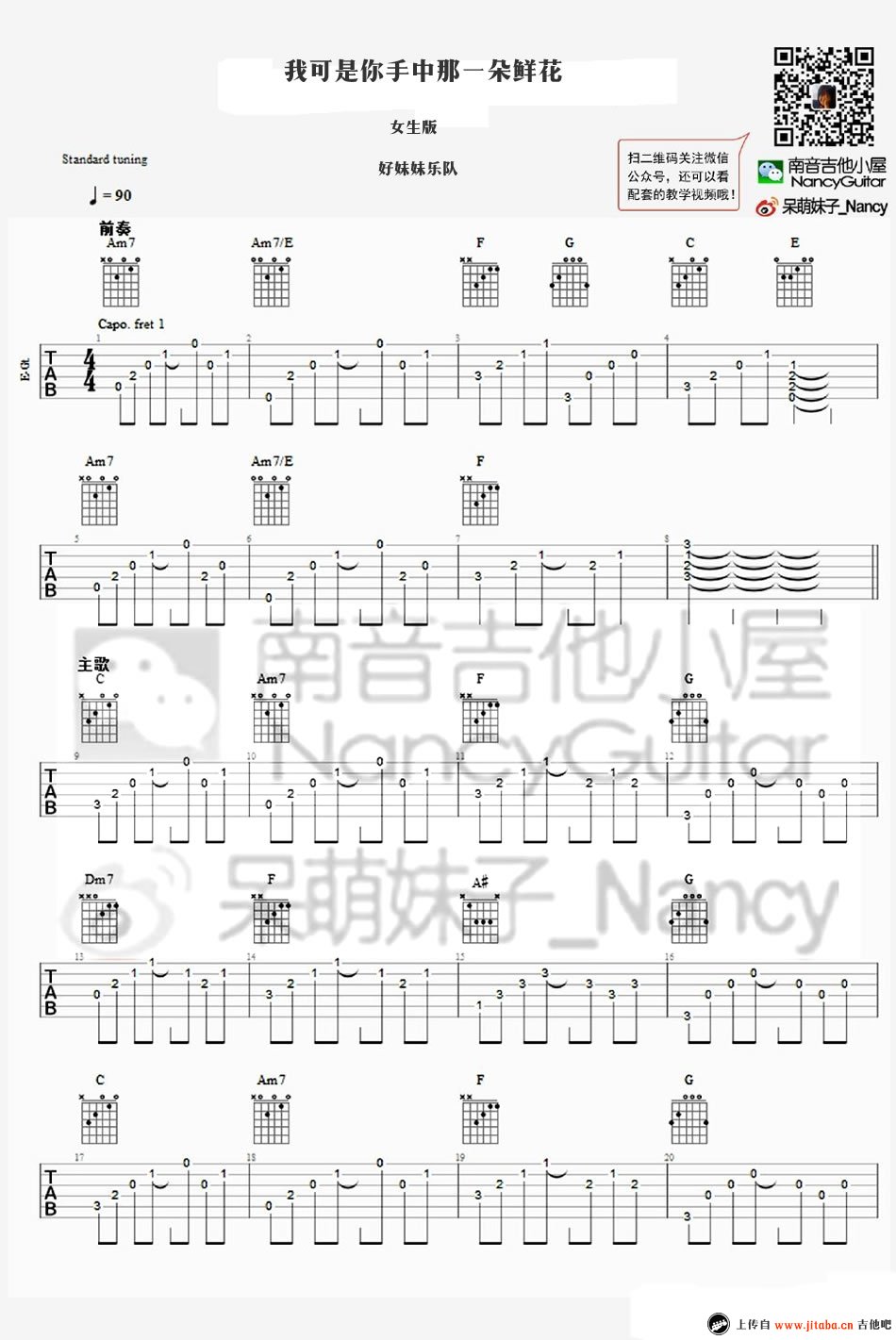 好妹妹乐队《我可是你手中那一朵鲜花》吉他谱_C调弹唱谱...