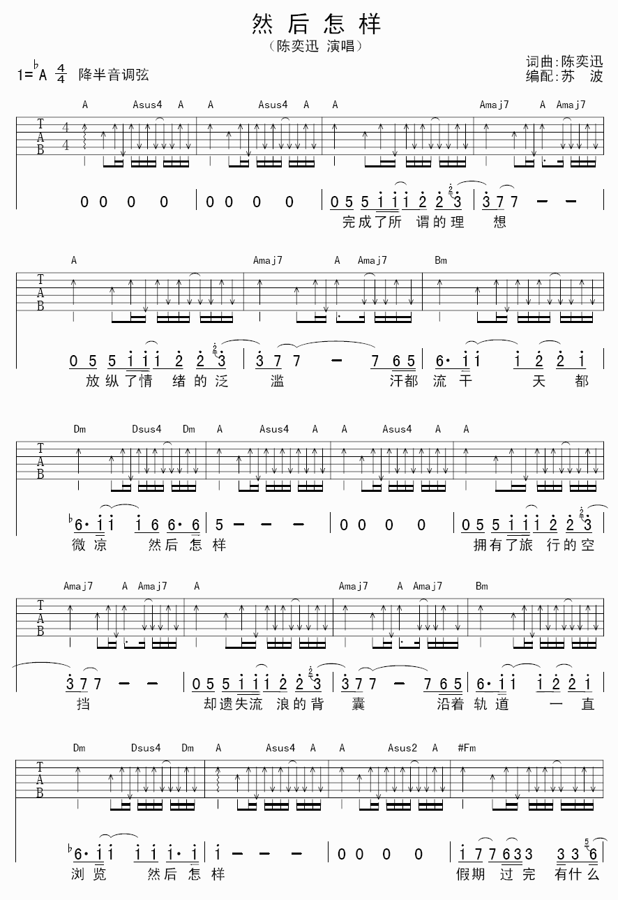 陈奕迅《然后怎样》吉他谱-A调弹唱六线谱...