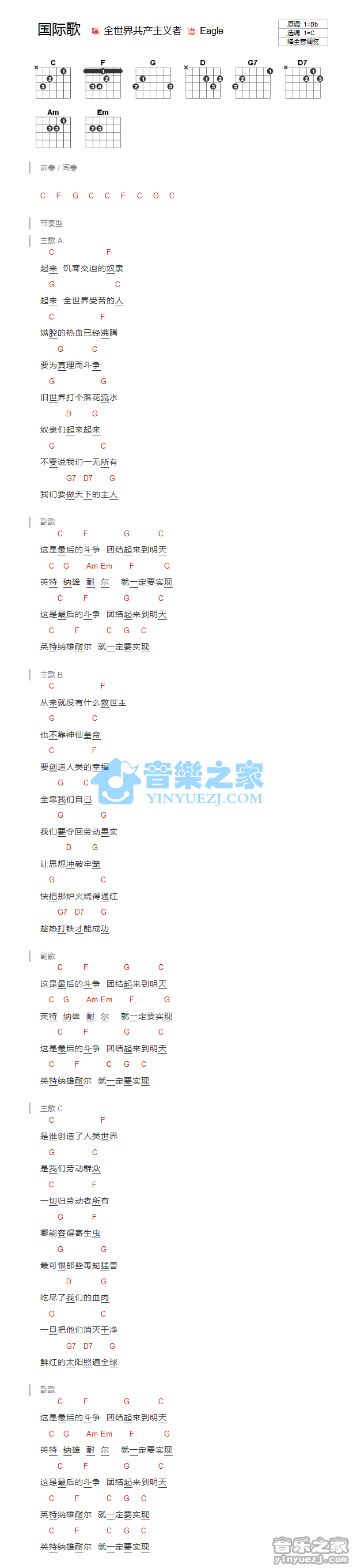 吉他《国际歌》吉他谱_C调和弦弹唱谱