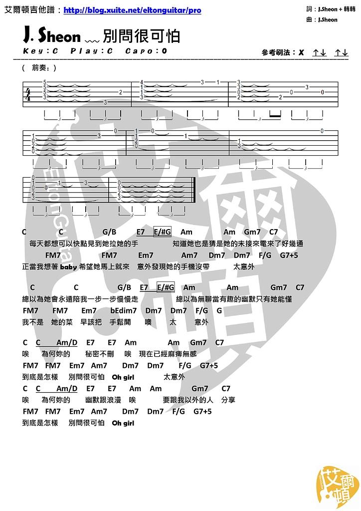 吉他J Sheon《别问很可怕》吉他谱-C调指弹谱