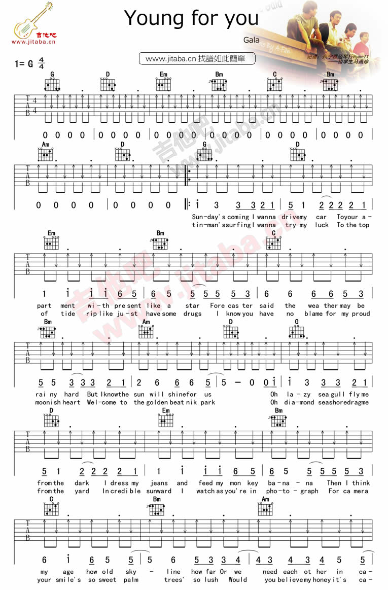 吉他Gala乐队《young for you》吉他谱-G调弹唱谱