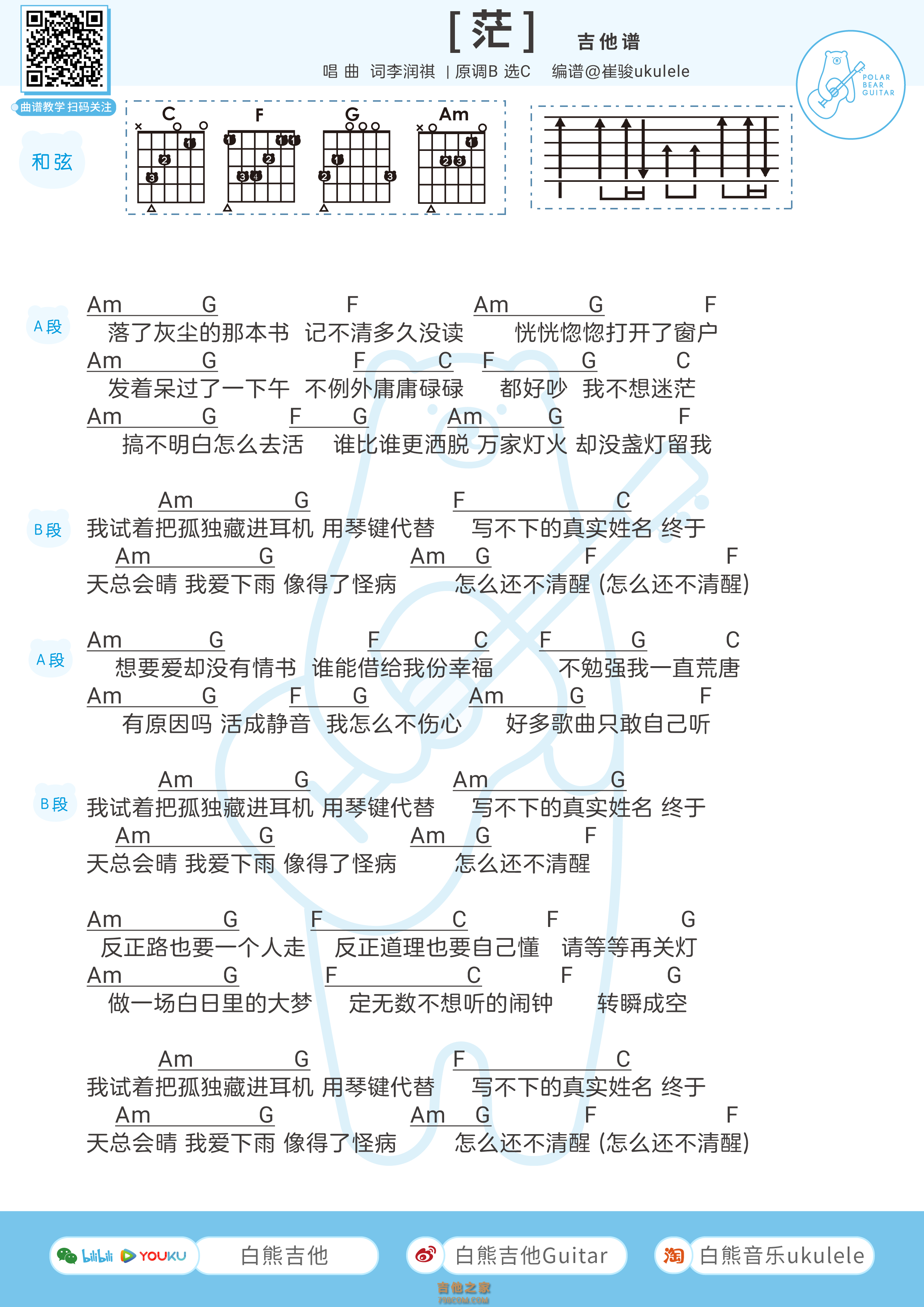 吉他李润祺《茫》吉他谱-C调和弦弹唱谱