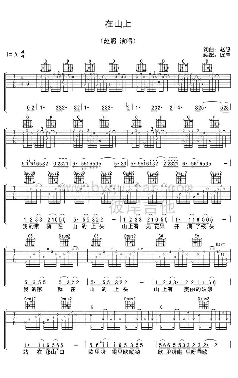 吉他赵照《在山上》吉他谱-A调六线弹唱谱