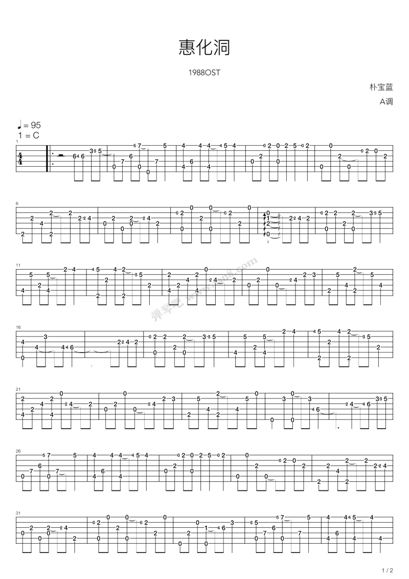 吉他朴宝蓝《惠化洞》吉他谱_C调指弹谱