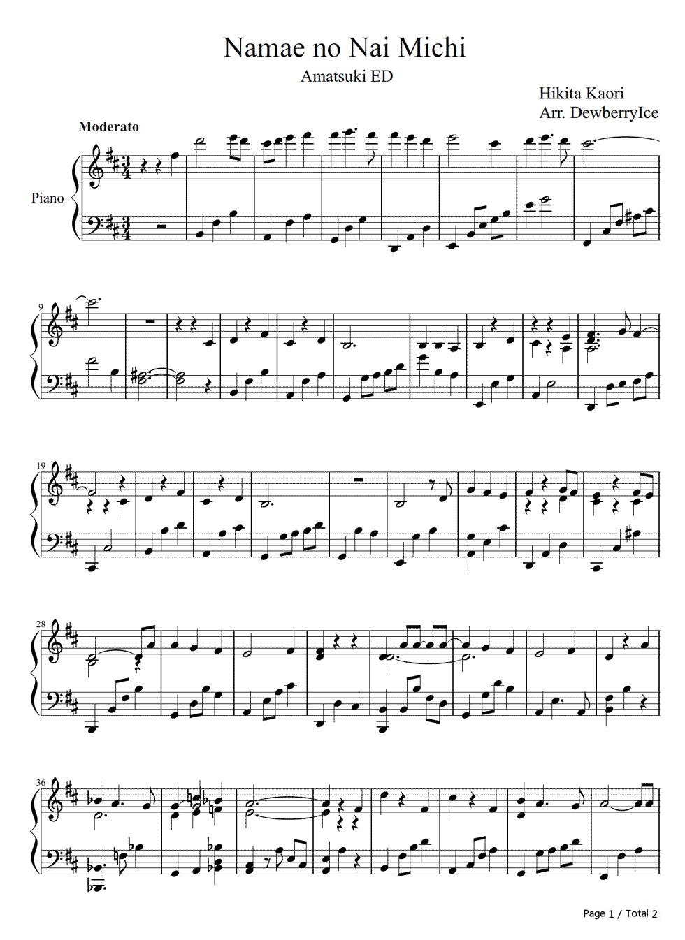 动漫《雨月》的片尾曲《无名之路》钢琴谱...