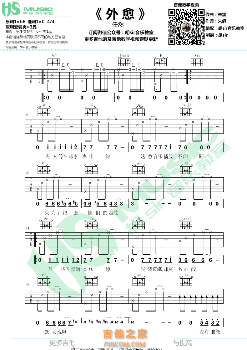 吉他任然 《外愈》吉他谱- C调弹唱六线谱简单版