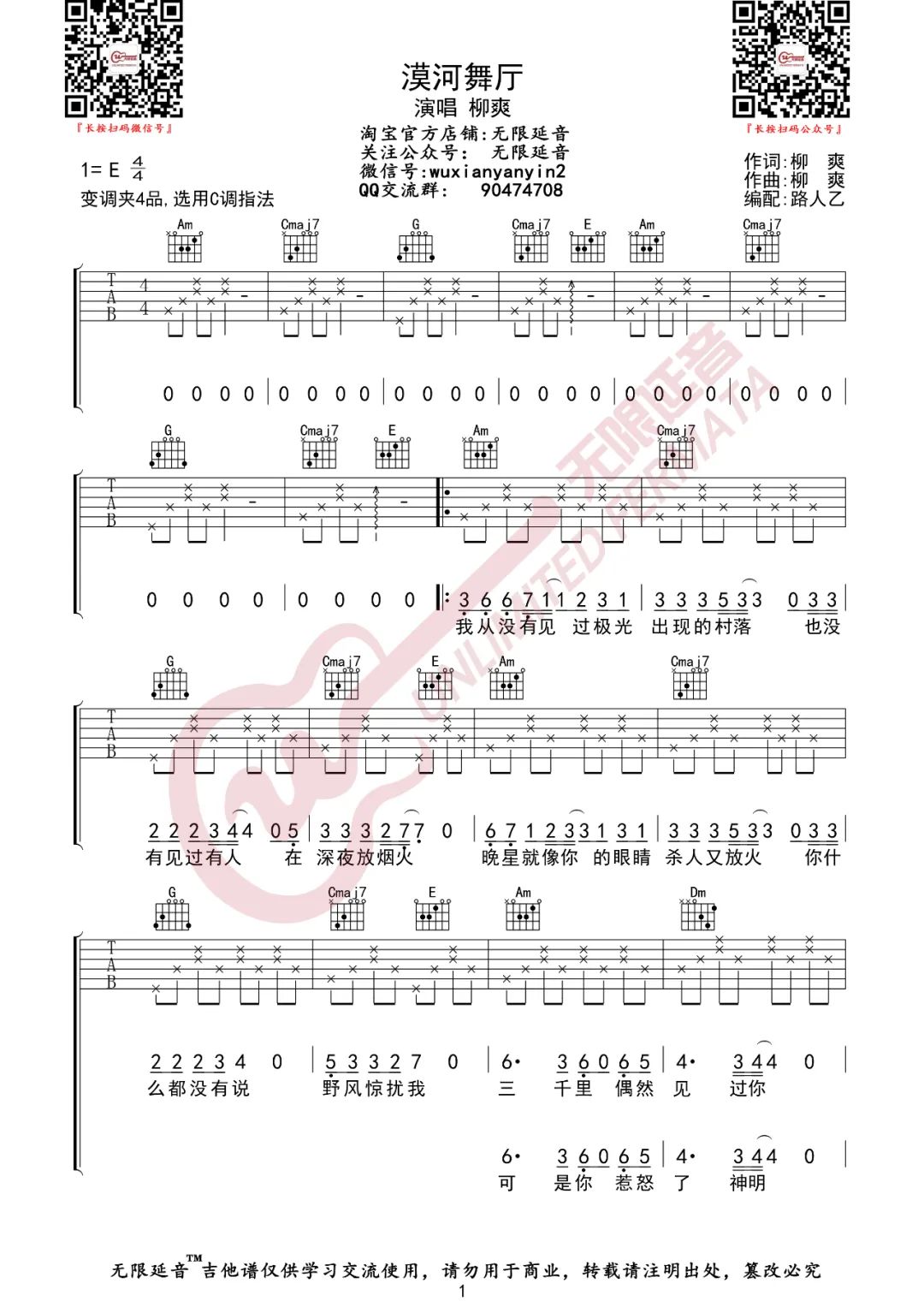 柳爽《漠河舞厅》吉他谱_C调弹唱六线谱...