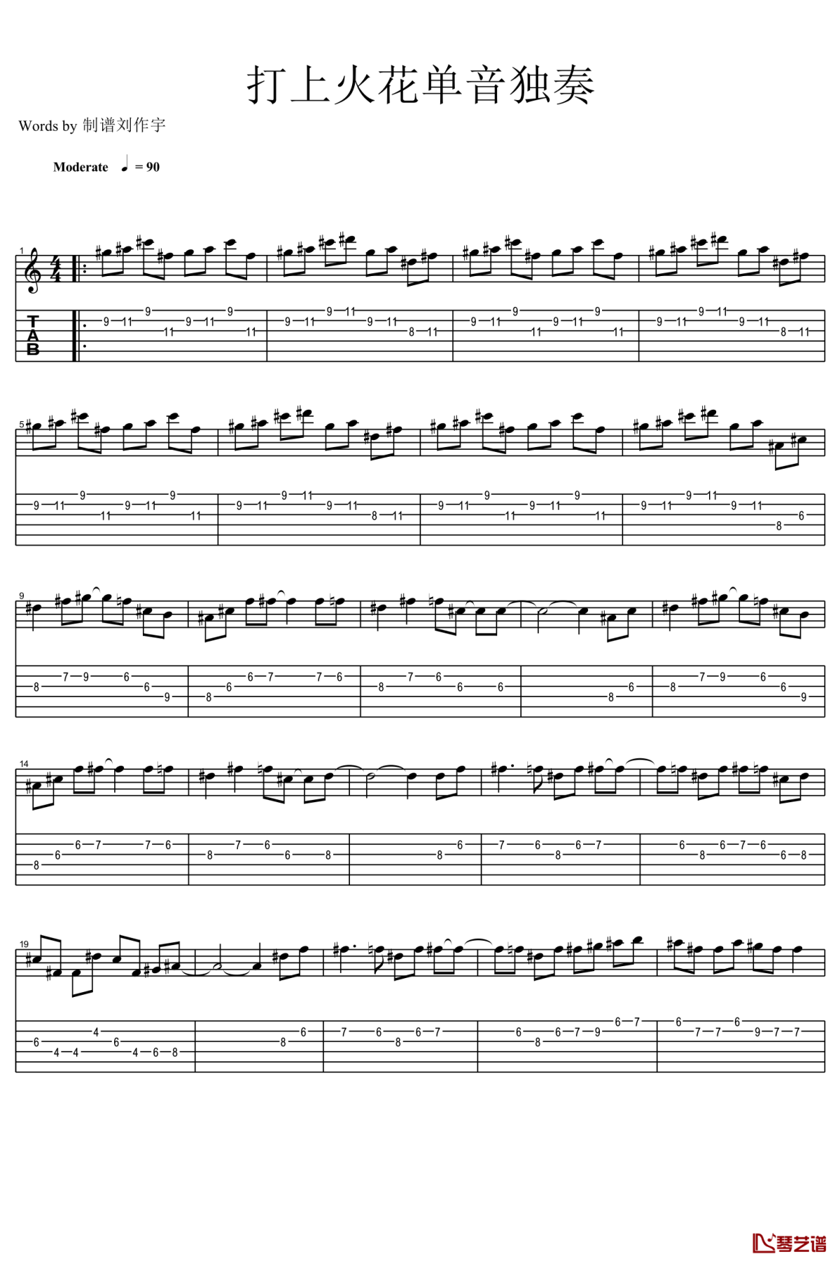米津玄师《打上花火》指弹谱单音版吉他独奏谱...