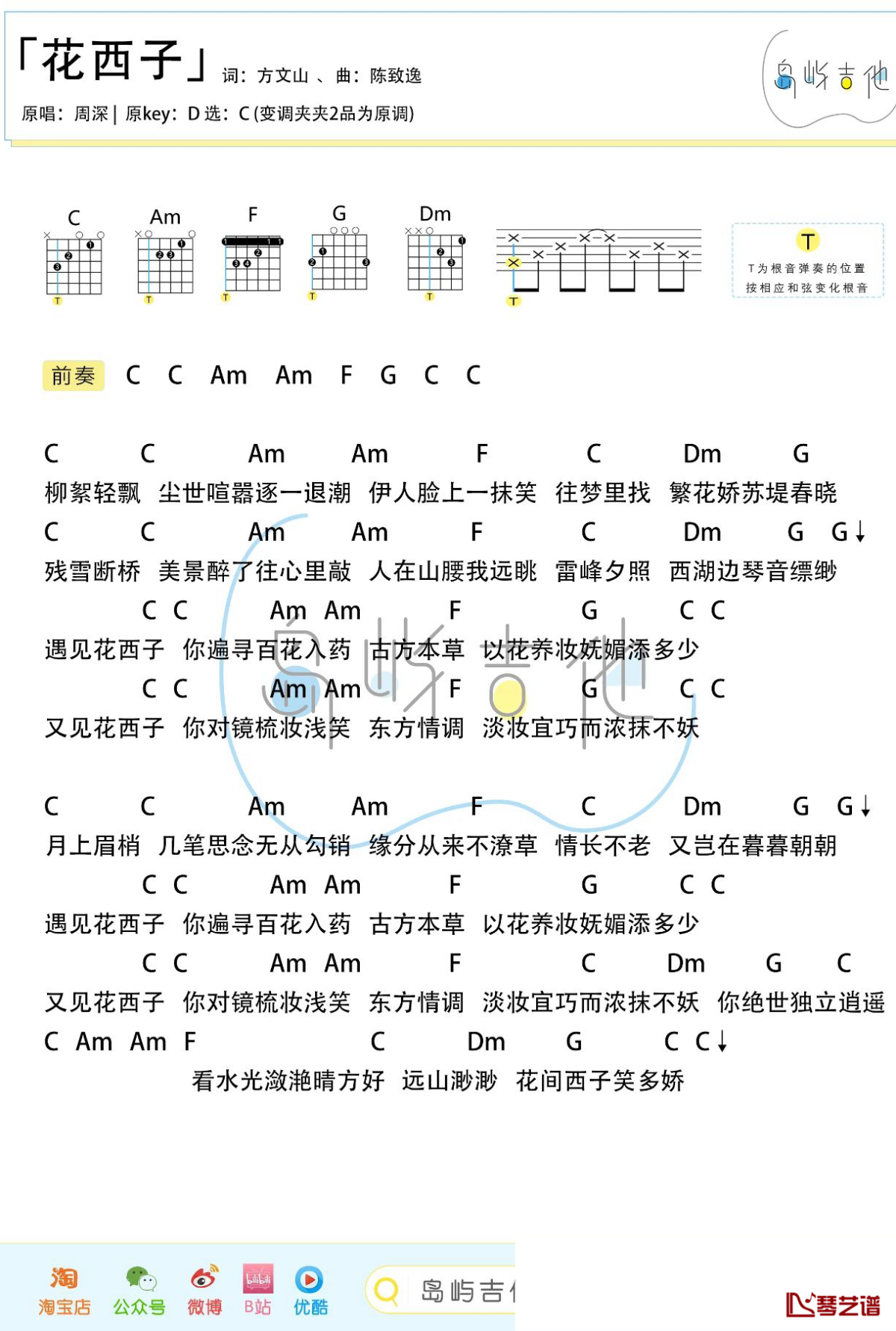 周深《花西子》吉他谱C调...
