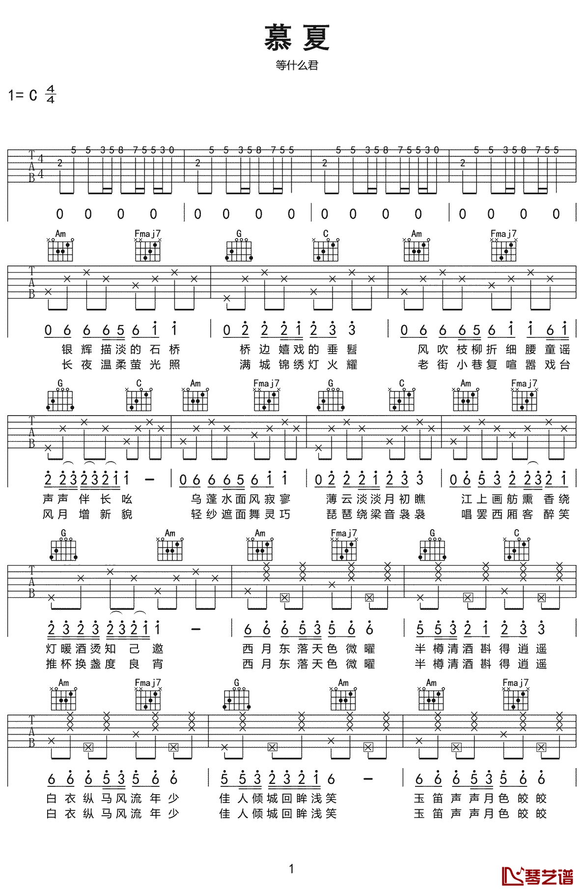 等什么君《慕夏》吉他谱-C调弹唱谱...
