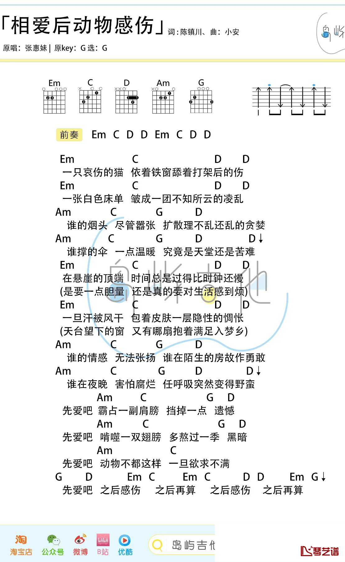 吉他张惠妹《相爱后动物感伤》吉他谱 G调