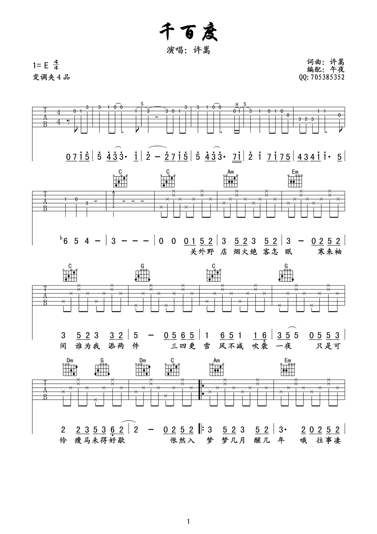 许嵩《千百度》吉他谱...