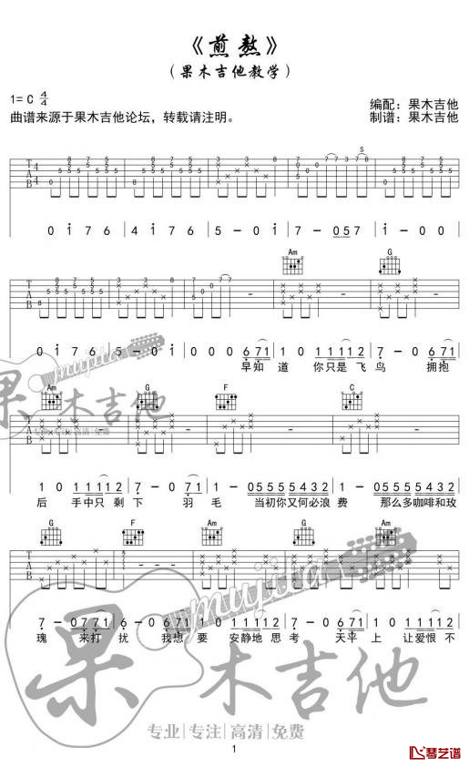 尹毓恪/李佳薇《煎熬》吉他谱G调弹唱谱...