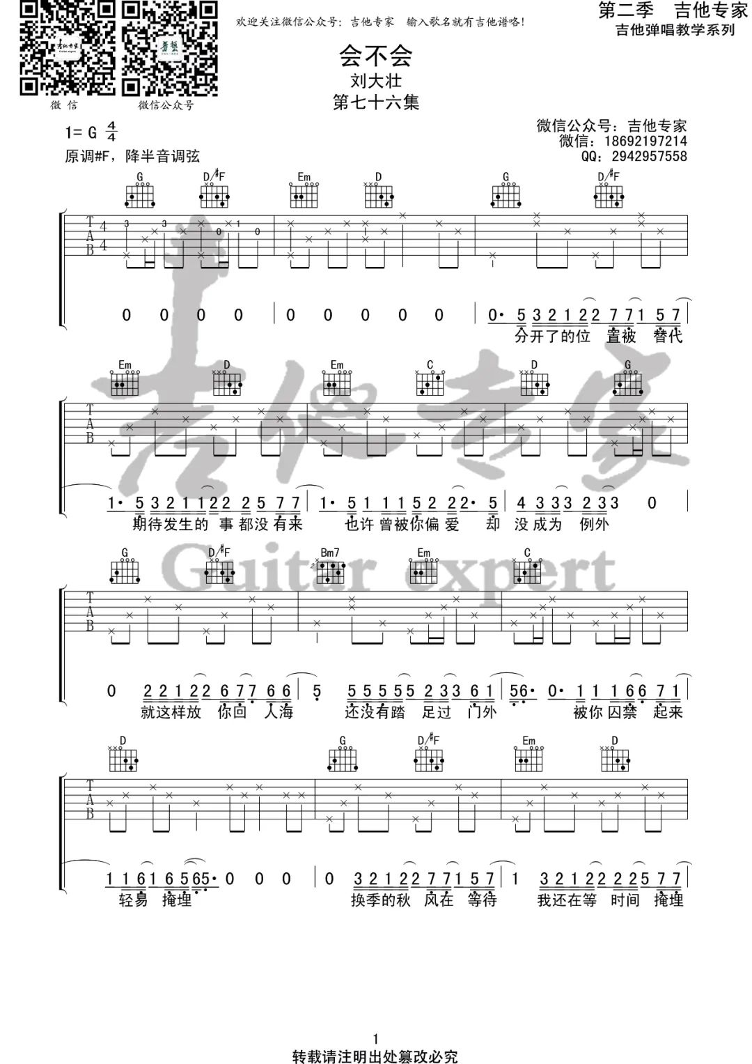 吉他刘大壮《会不会》吉他谱_G调原版弹唱谱