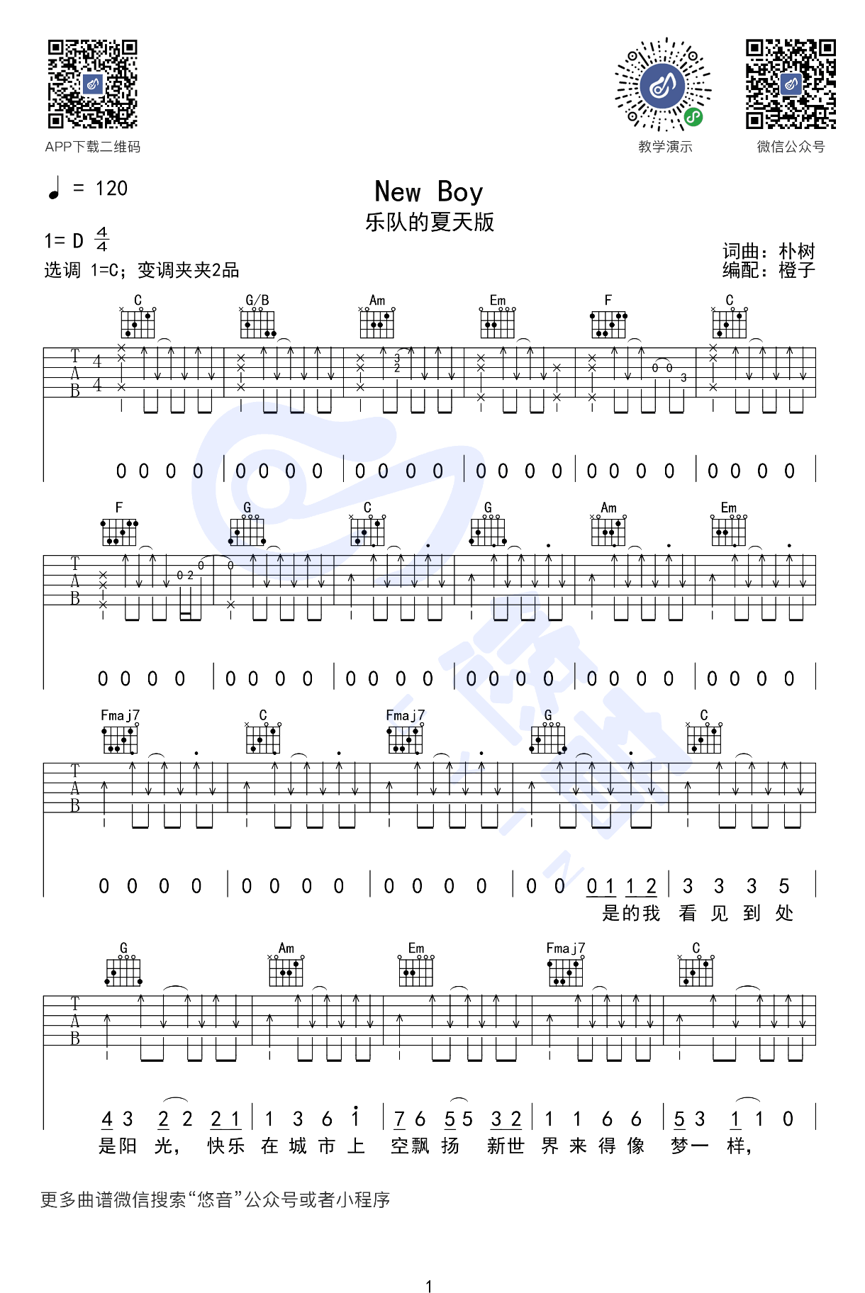 吉他盘尼西林《New Boy》吉他谱_乐队的夏天版本