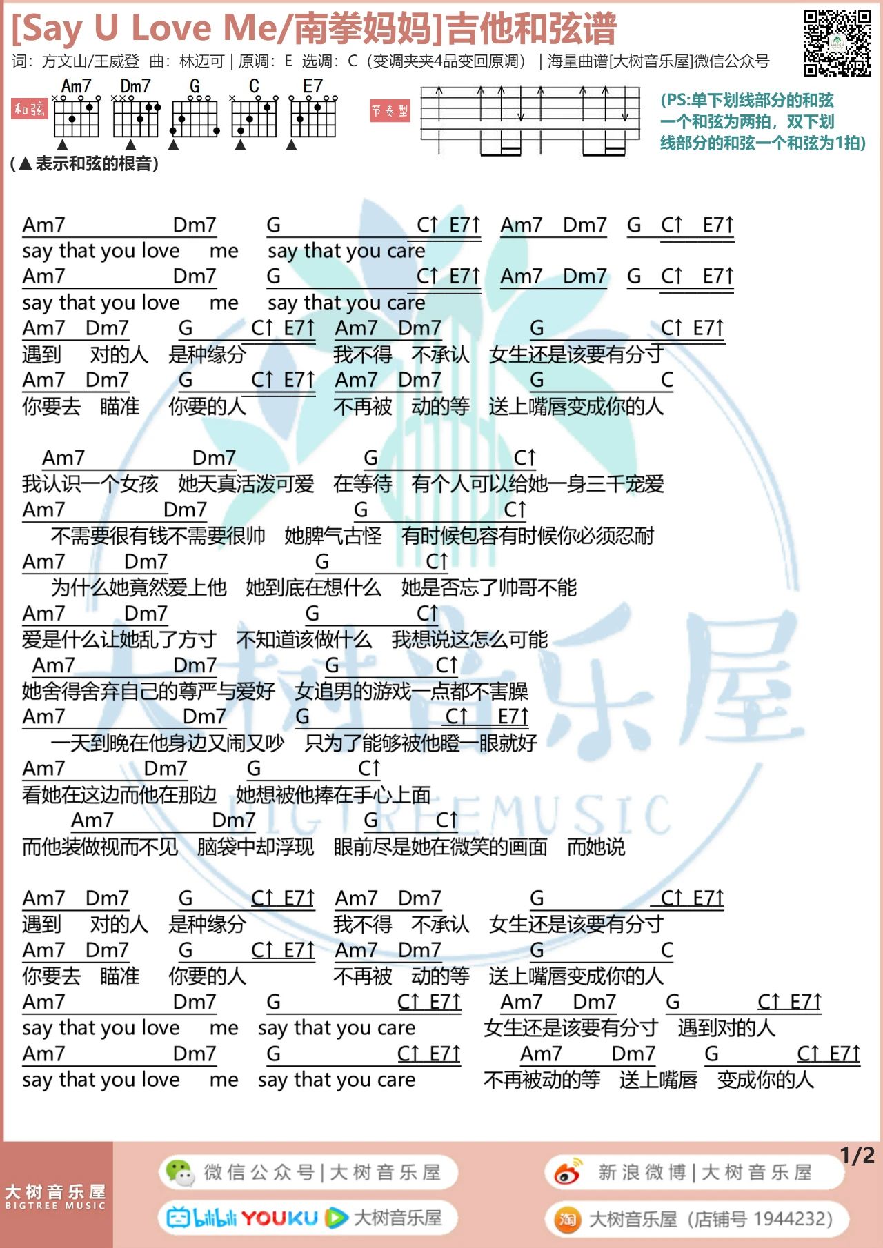 南拳妈妈《sayuloveme》吉他谱C调...