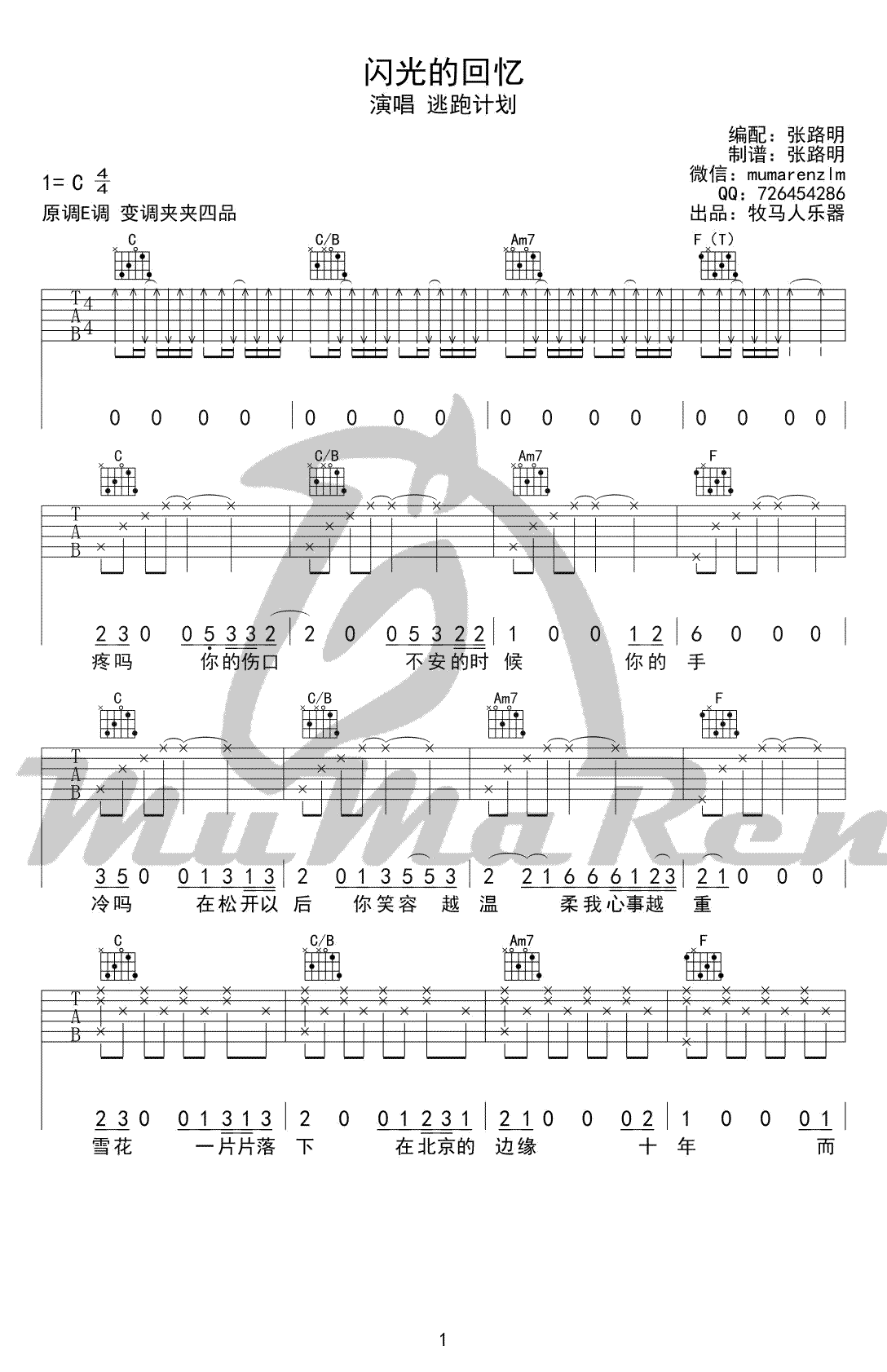逃跑计划《闪光的回忆》吉他谱-C调弹唱谱六线谱...