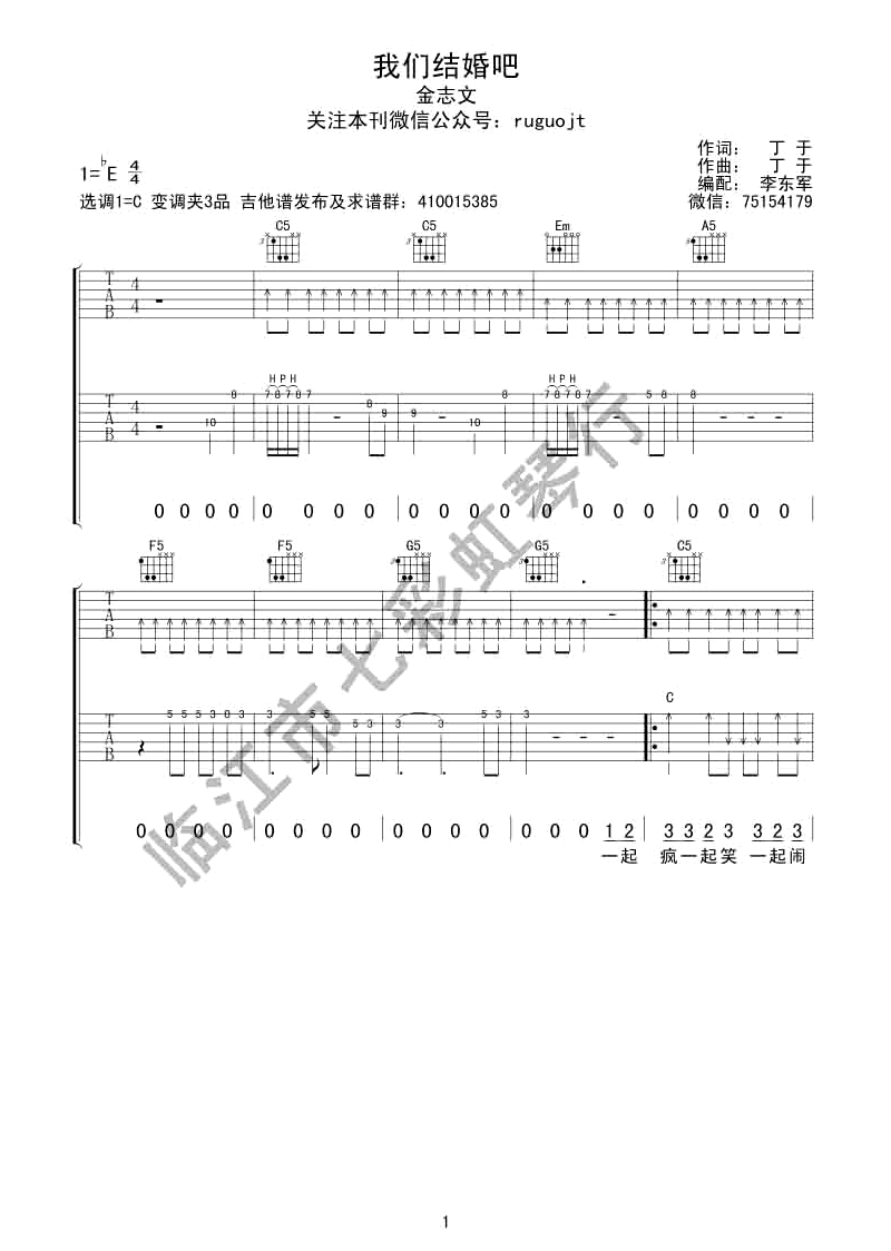 吉他金志文《我们结婚吧》吉他谱-C调弹唱谱六线谱