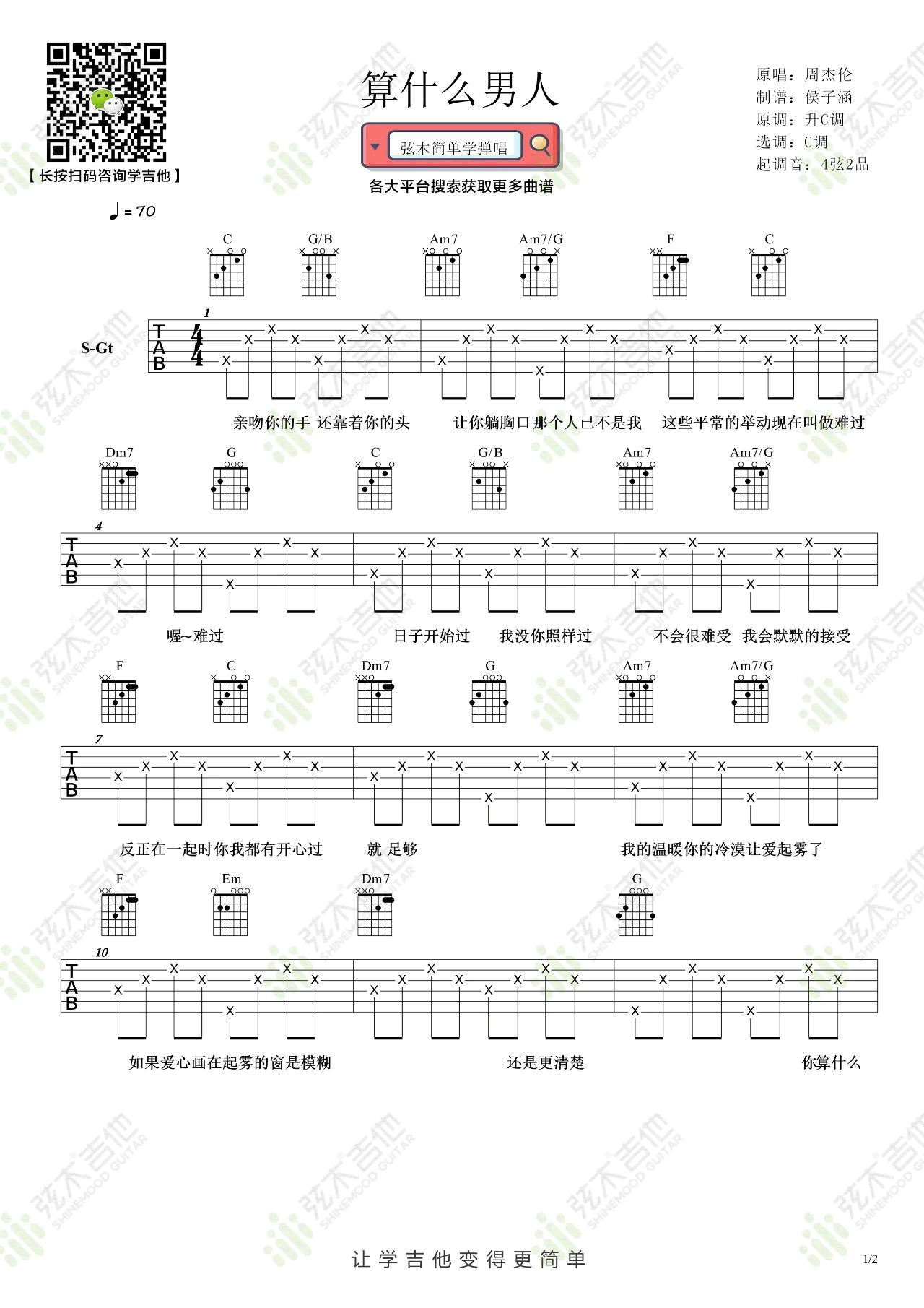 周杰伦《算什么男人》吉他谱-C调弹唱谱六线谱...