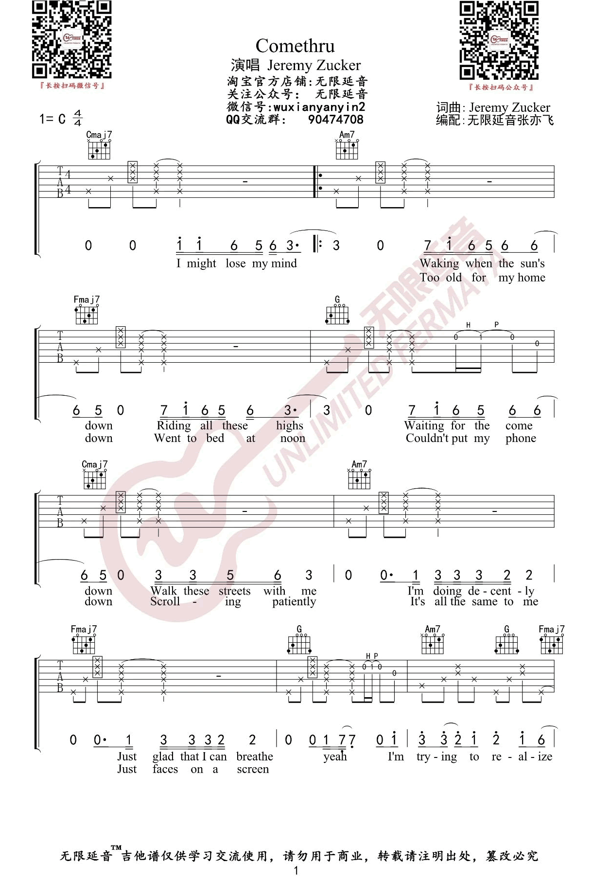 JeremyZucker《Comethru》吉他谱-C调弹唱谱六线谱...