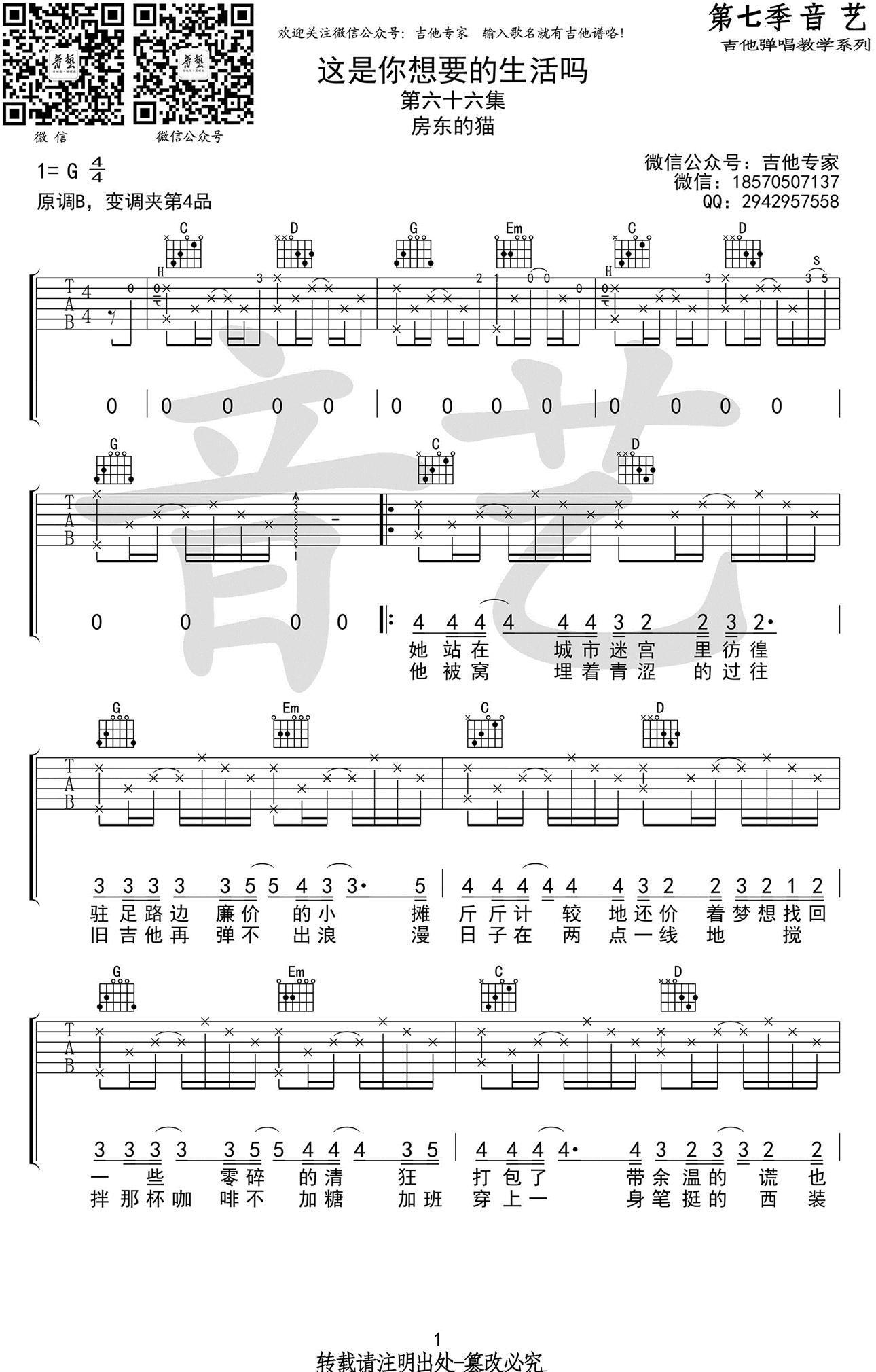 吉他房东的猫《这是你想要的生活吗》吉他谱-G调弹唱谱六线谱